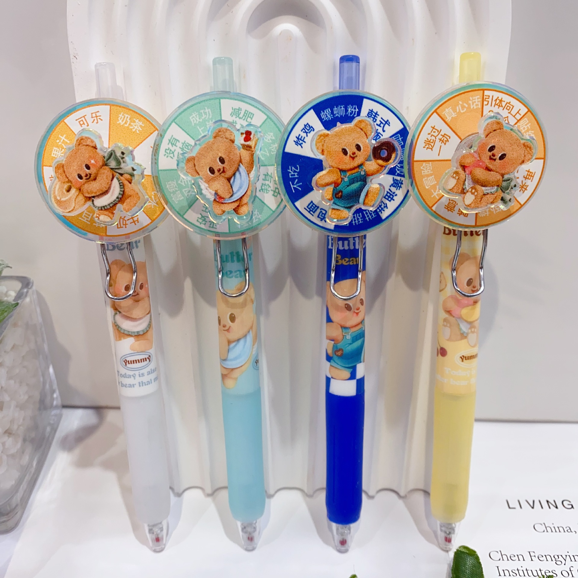 새로운 만화 턴테이블 그린 중립 펜 귀여운 만화 감압 자이로 전송 펜 프레스 펜