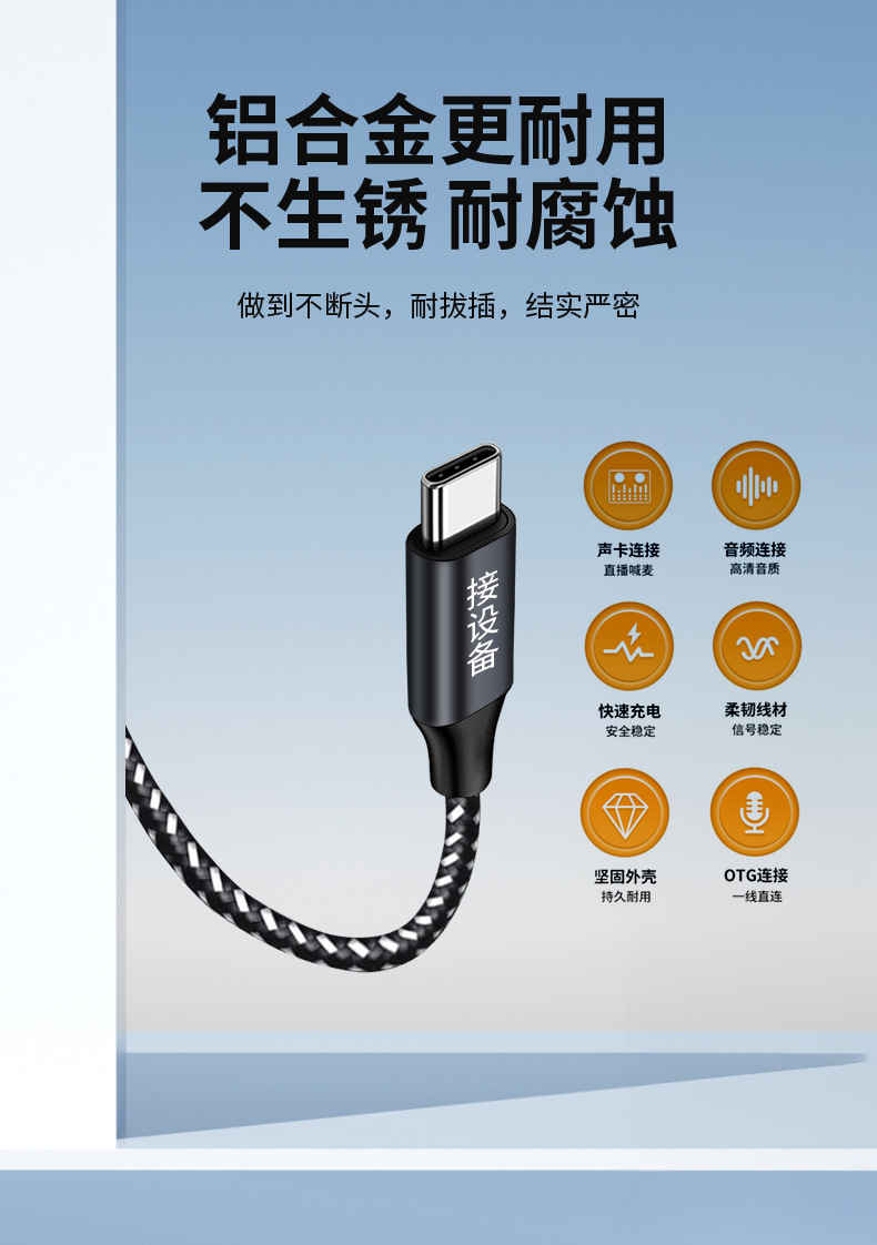 【产品接口】:type-c转lightning二合一转接头(OTG),裸线30g/条