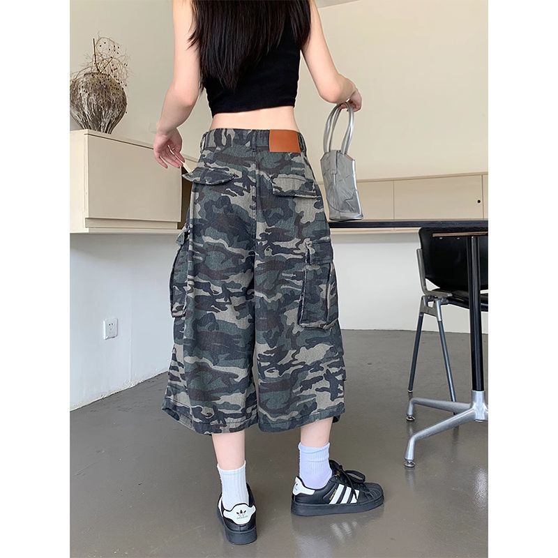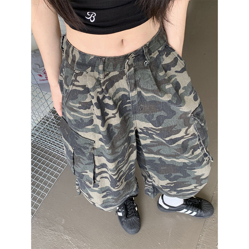 미국 복고풍 자른 청바지 여성의 2024 새로운 높은 허리 느슨한 슬리밍 위장 넓은 다리 스트레이트 플러스 사이즈 바지스토어 가기