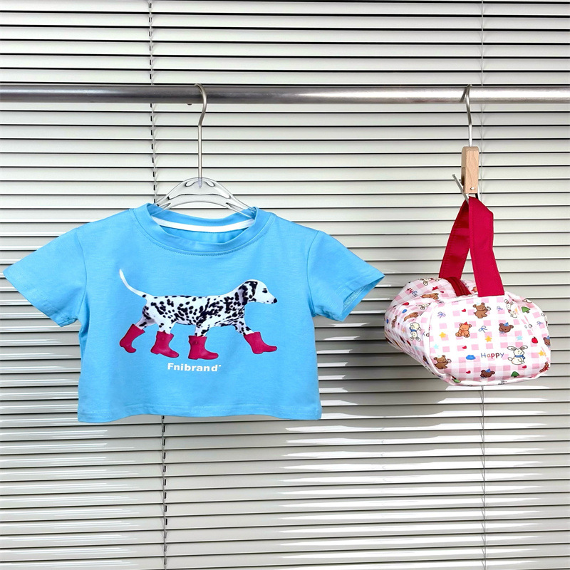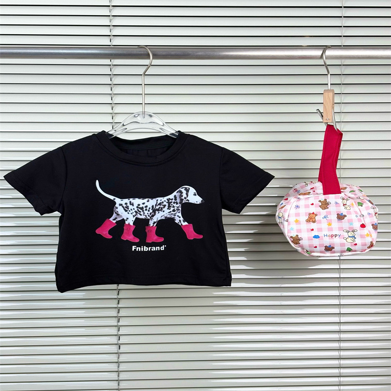 소녀 한국 티셔츠 2025 여름 새로운 라운드 넥 달마시안 큰 어린이를위한 짧은 소매 티셔츠스토어 가기