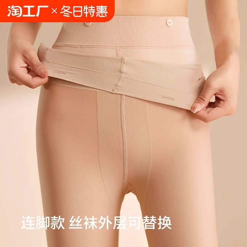 탈부착 가능한 단추가 있는 광다리 스타킹, 살색 스타킹, 이중 레이어 레깅스, 가을 겨울용 두꺼운 기모 팬티스타킹스토어 가기