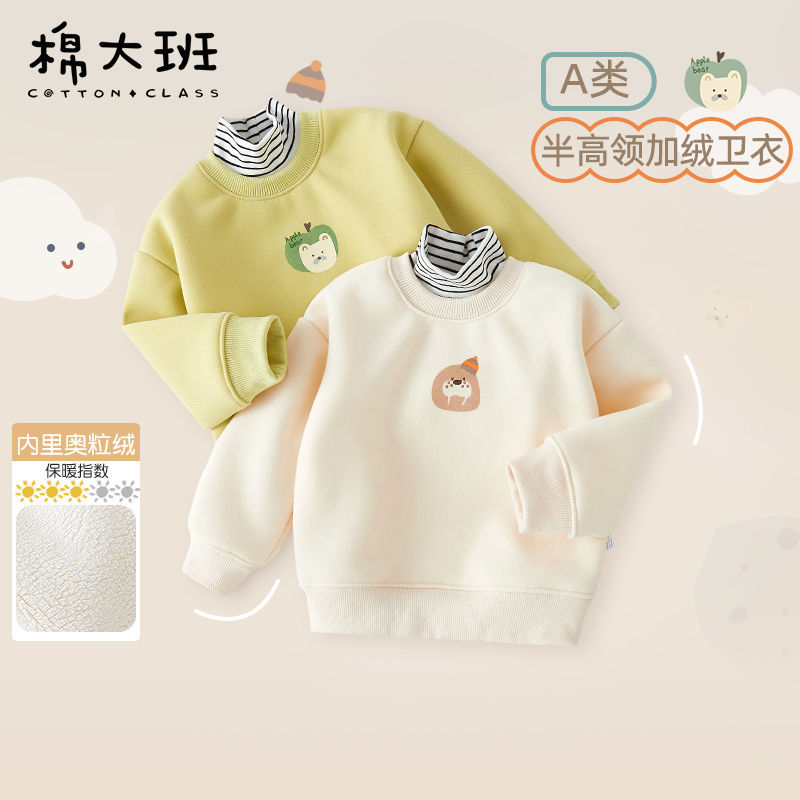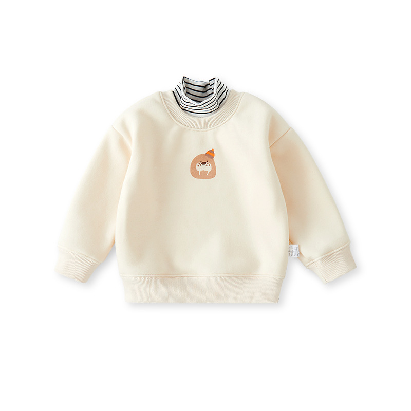 어린이 기모 스웨터 하프 하이 칼라 원피스 벨벳 소년 2024 새로운 가짜 투피스 아기 따뜻한 코트 가을과 겨울스토어 가기