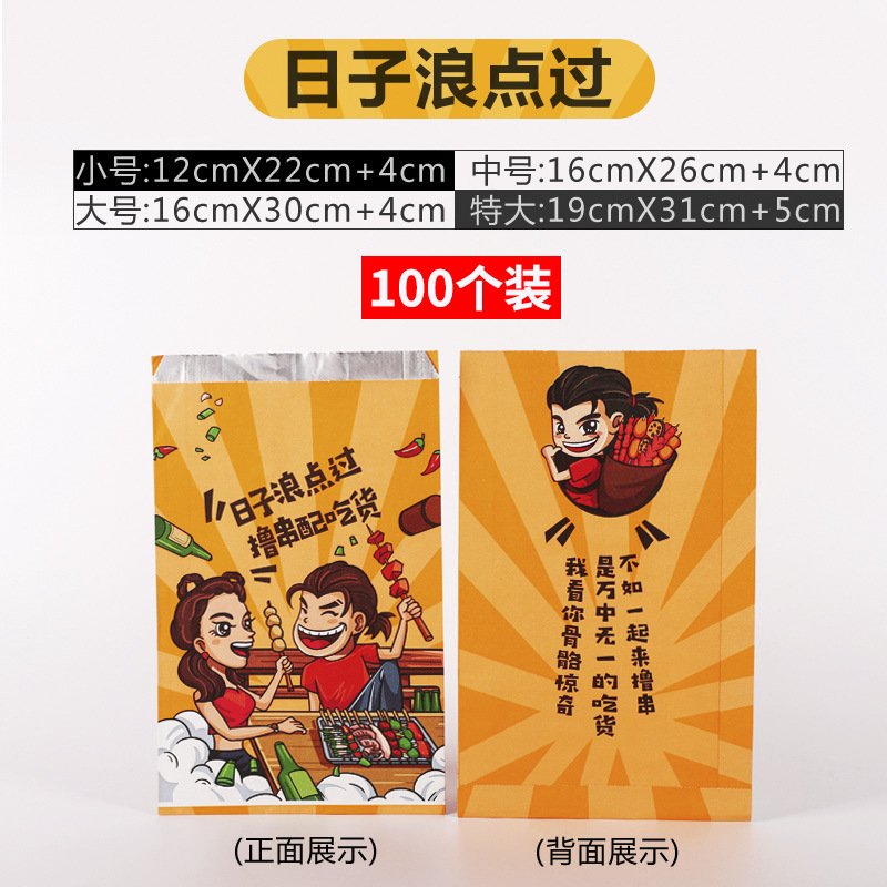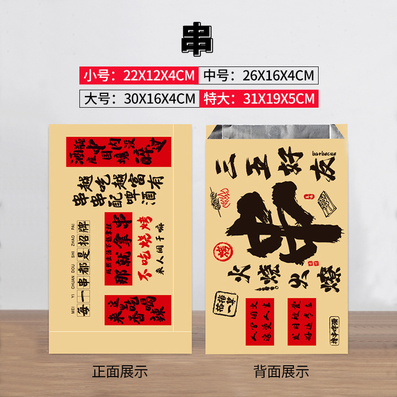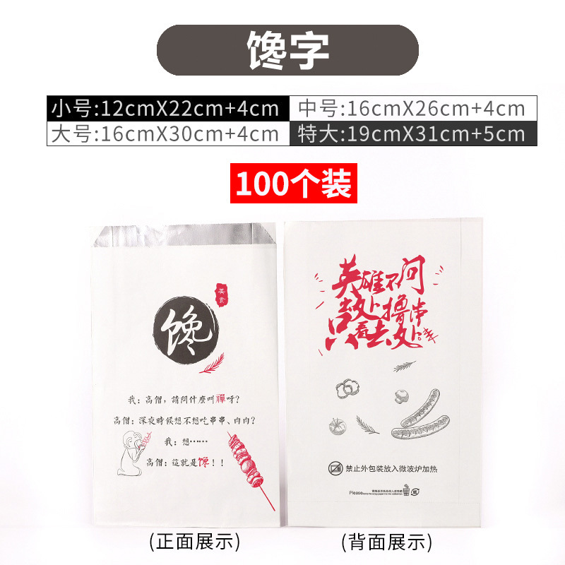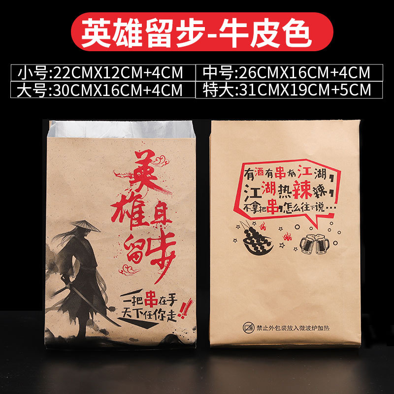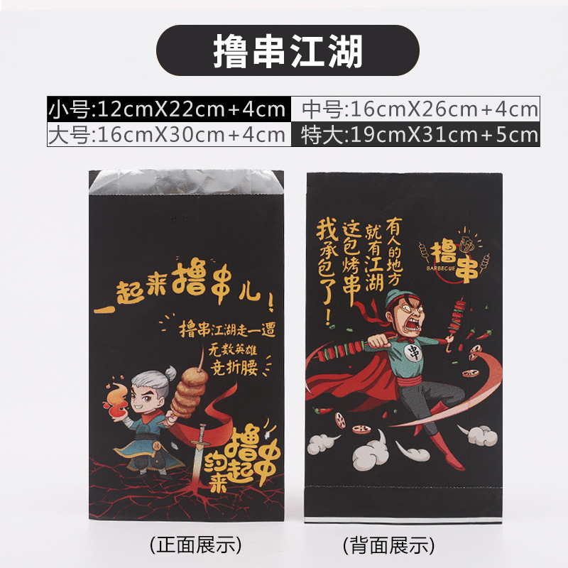 압연 문자열 Jianghu 바비큐 포장 가방 단열 일회용 튀김 문자열 포장 기름 방지 크래프트 종이 가방 주석 호일 가방스토어 가기