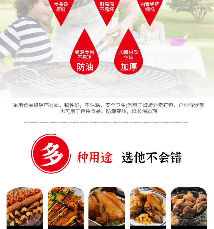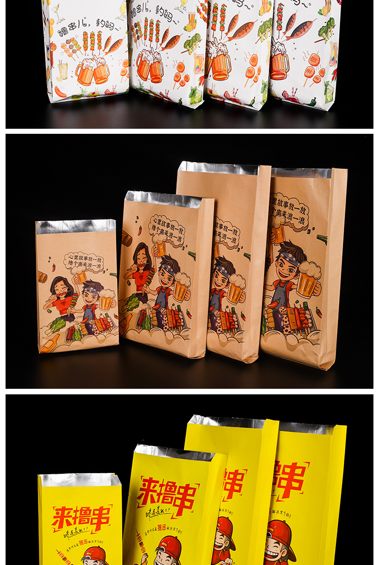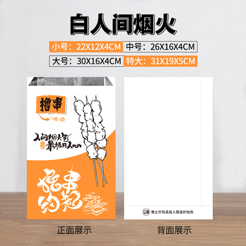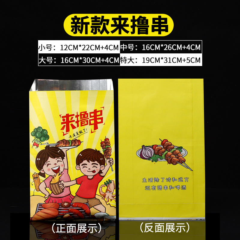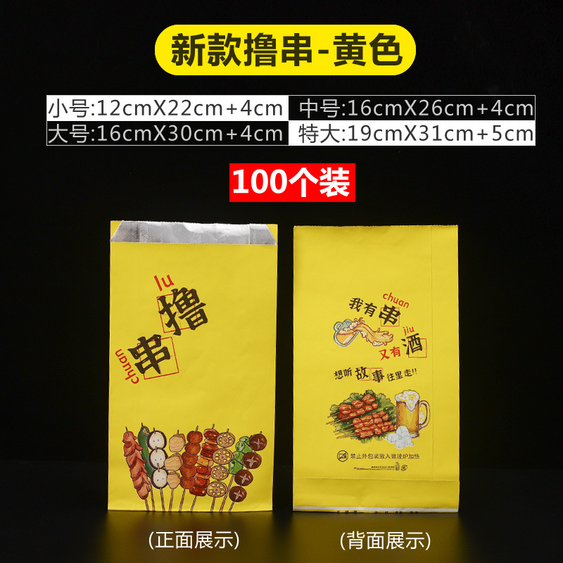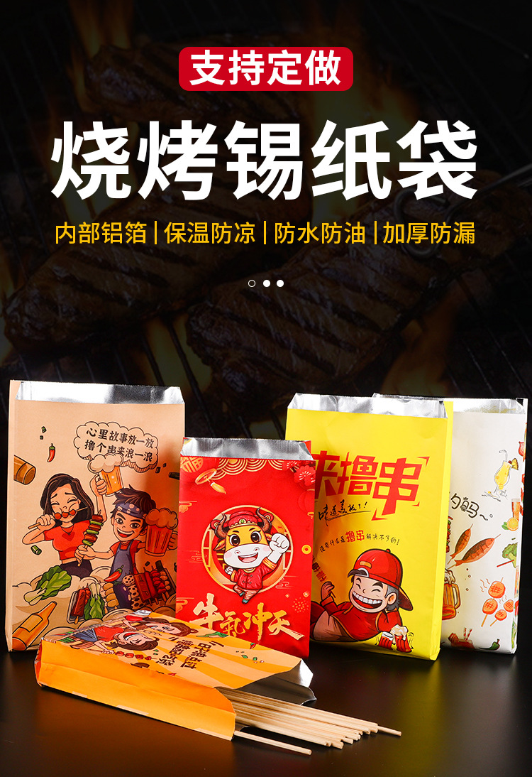 압연 문자열 Jianghu 바비큐 포장 가방 단열 일회용 튀김 문자열 포장 기름 방지 크래프트 종이 가방 주석 호일 가방