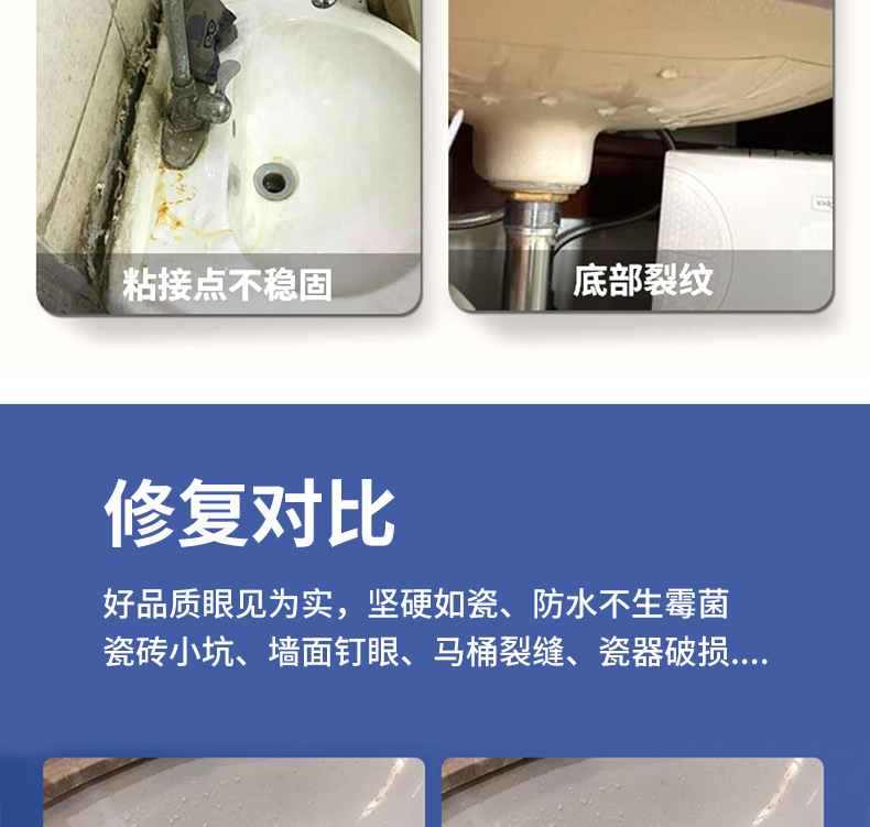 세라믹 보수용 접착제 흰색 세면대 균열 손상 대리석 세면대 화장실 구멍 보수 타일 접착제스토어 가기