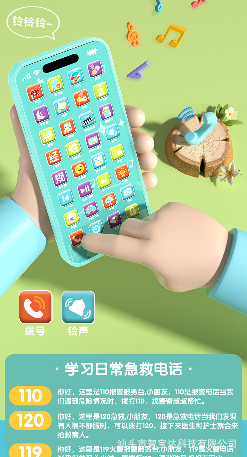 어린이 조기 교육 퍼즐 휴대 전화 아기 다기능 학습 기계 음악 빛 터치 스크린 시뮬레이션 전화 이야기 기계