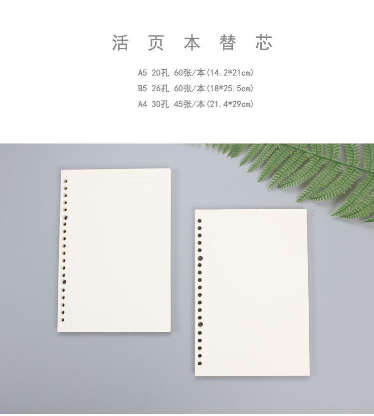 빈 수평선 20 구멍 26 구멍 30 구멍 느슨한 잎 종이 a5/b5/a4 그리드 도트 매트릭스 느슨한 잎 책 핵심 공장 정리