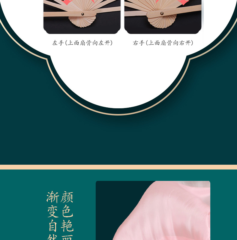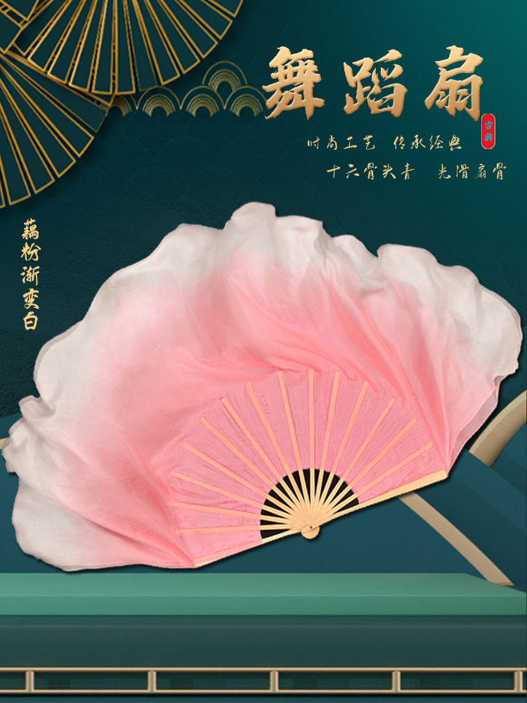 실크 댄스 팬 로터스 루트 전분 반전 염색 그라디언트 컬러 클래식 댄스 자오 저우 양코 양면 롱 실크 팬스토어 가기