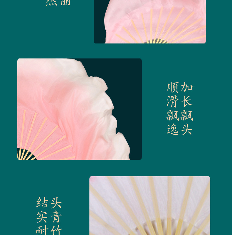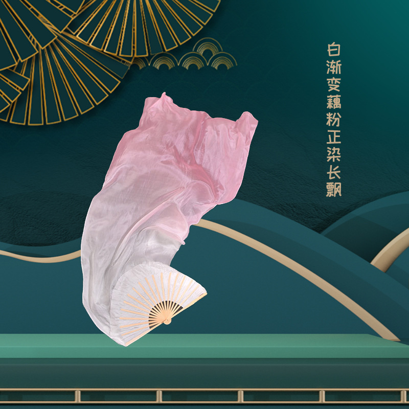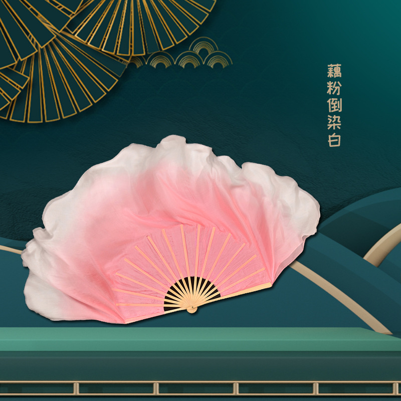 실크 댄스 팬 로터스 루트 전분 반전 염색 그라디언트 컬러 클래식 댄스 자오 저우 양코 양면 롱 실크 팬