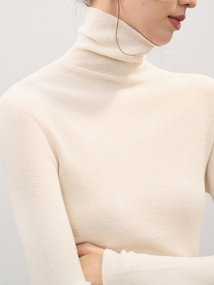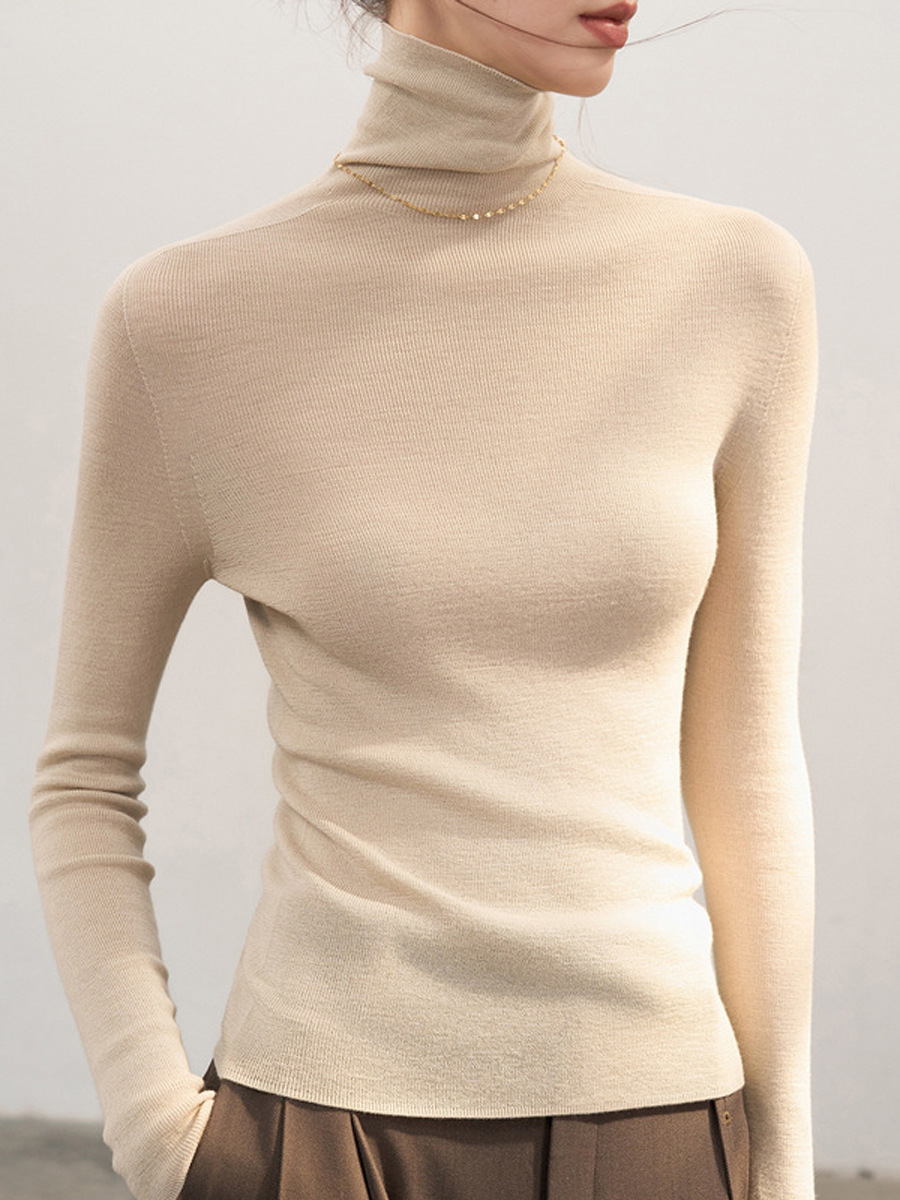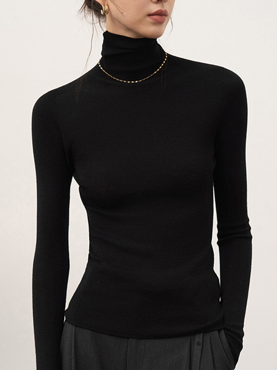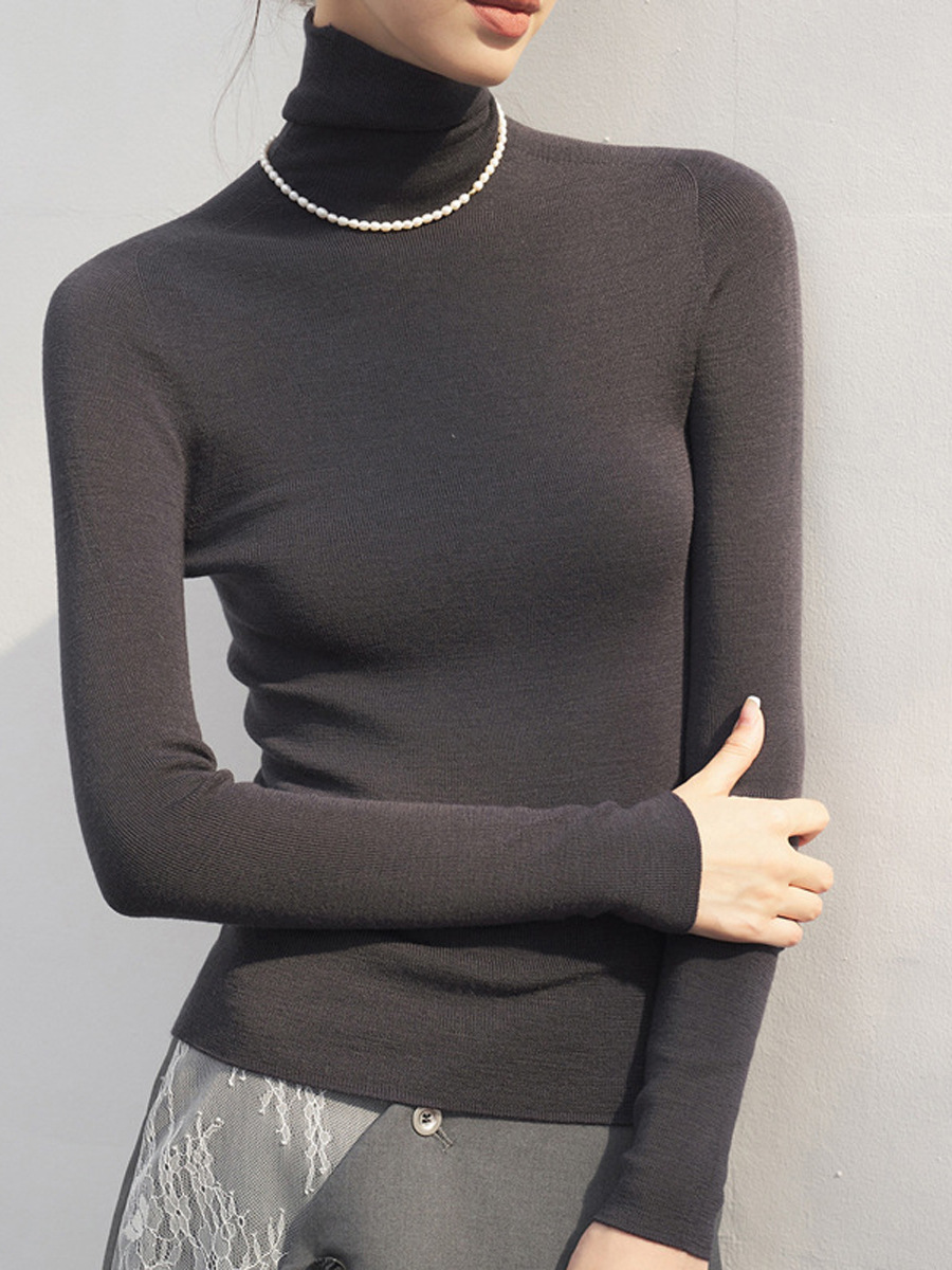 여성을위한 모든 양궁 원사 원활한 원피스 하이 넥 슬림 핏 슬림 니트 베이스 셔츠
