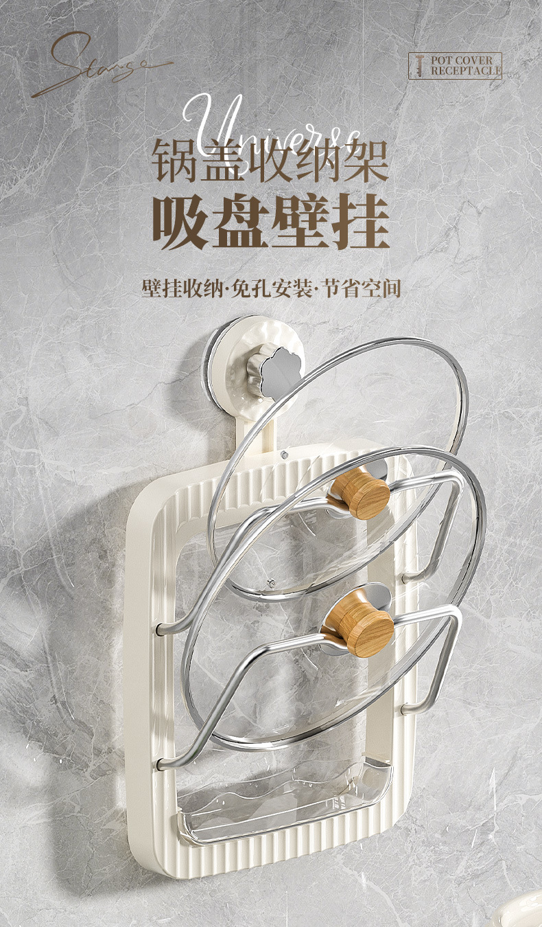 석션 컵 가벼운 고급 벽걸이 형 커팅 보드 스토리지 랙 주방 스토리지 랙 다기능 비 천공 냄비 뚜껑 스토리지 랙 가정용