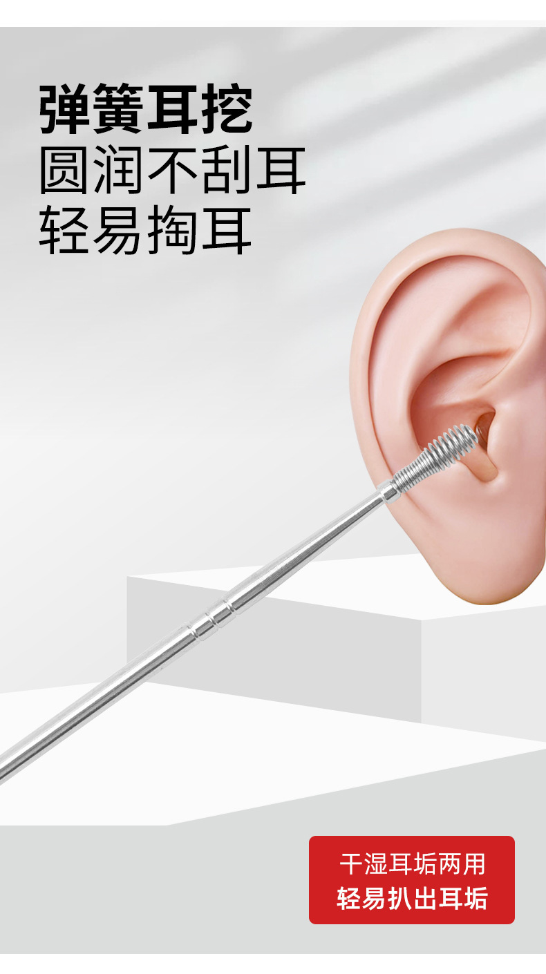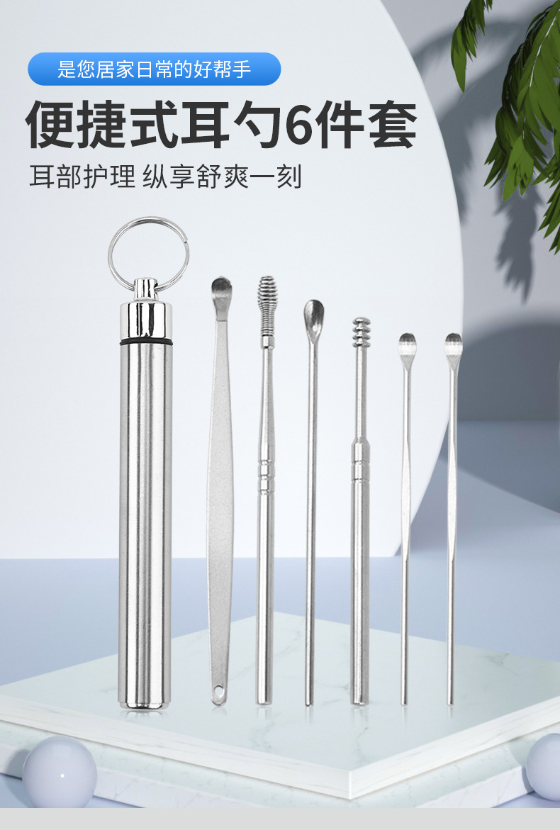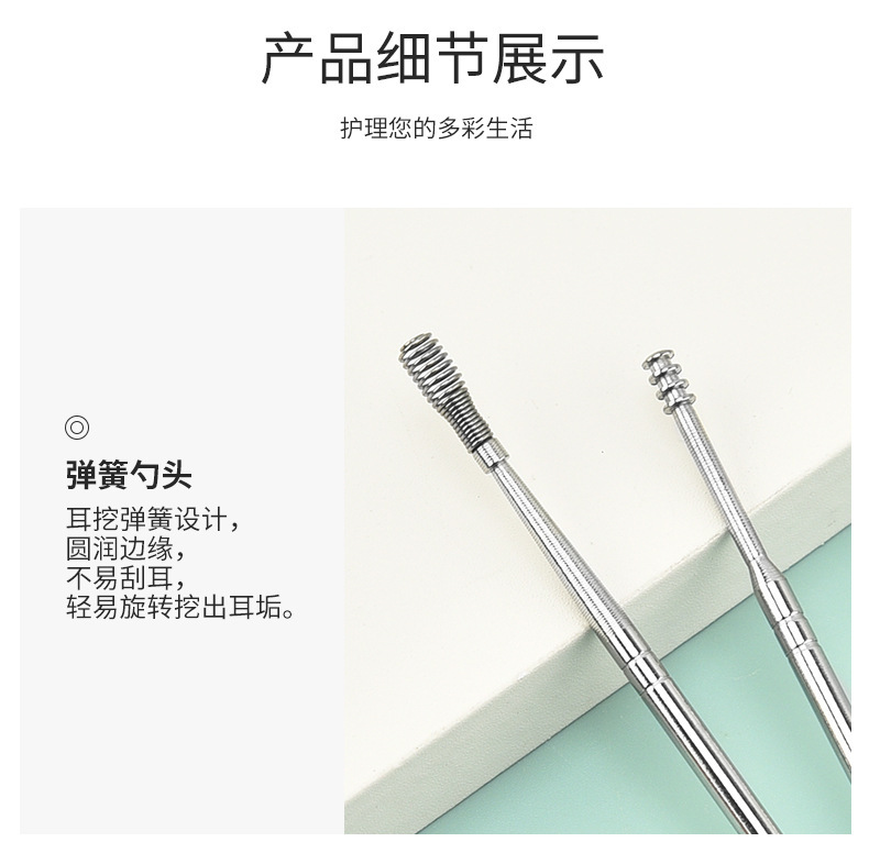 스테인레스 스틸 이어 스쿱 이어 클리너 스프링 더블 헤드 회전 이어 스쿱 6 피스 귀 따기 도구 세트 가정스토어 가기