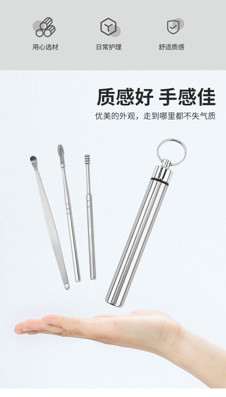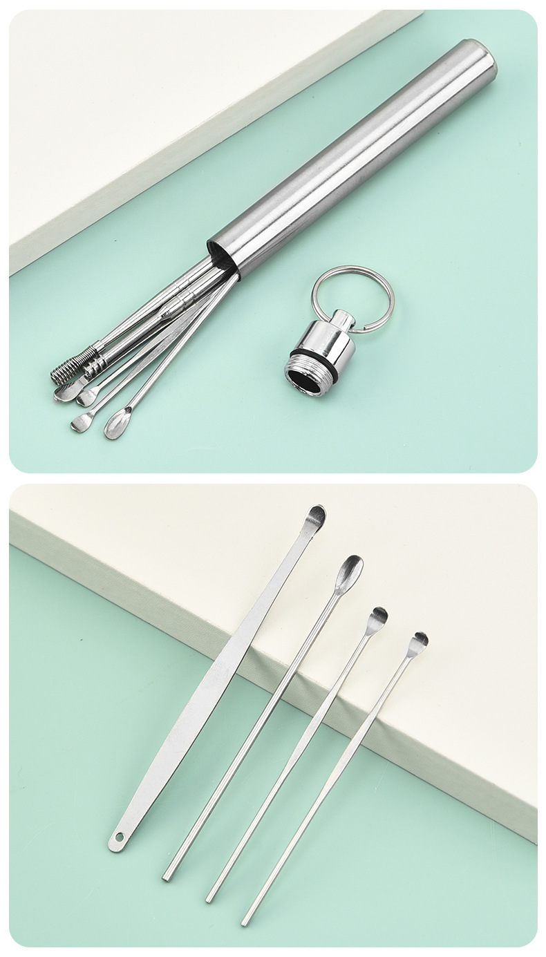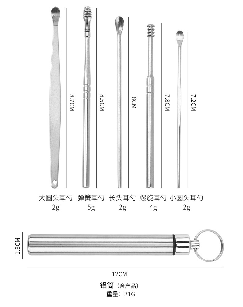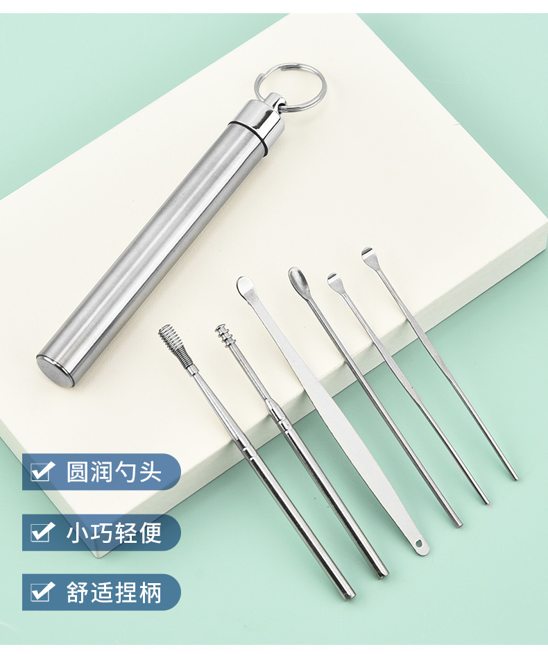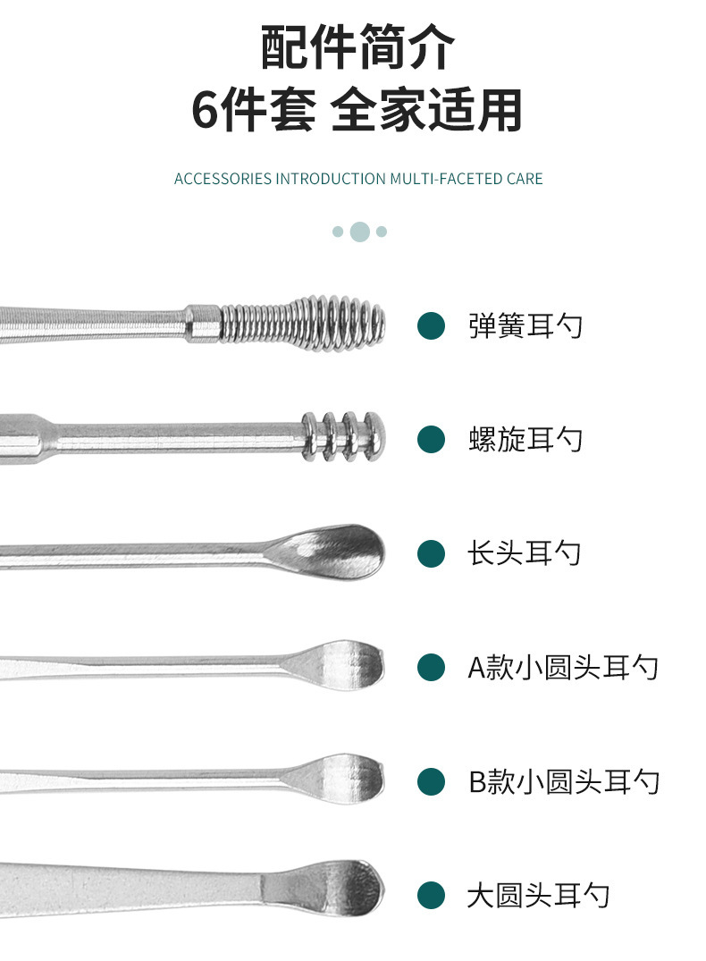 스테인레스 스틸 이어 스쿱 이어 클리너 스프링 더블 헤드 회전 이어 스쿱 6 피스 귀 따기 도구 세트 가정