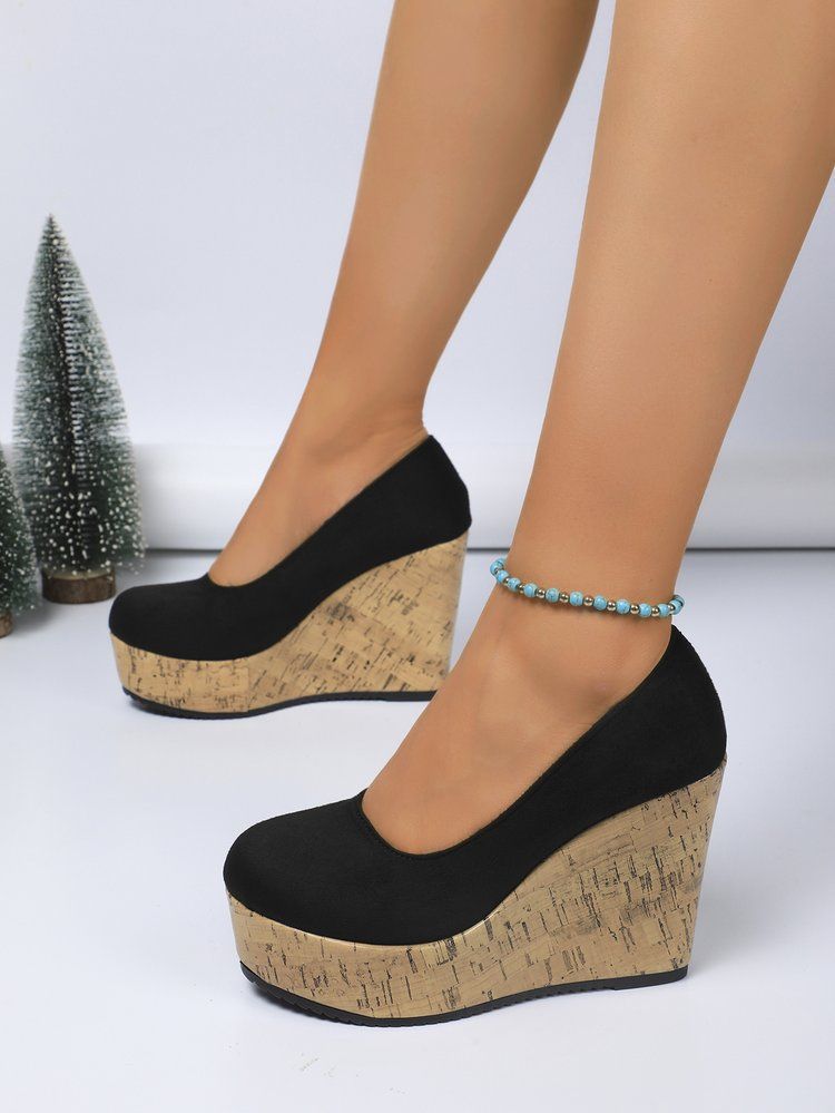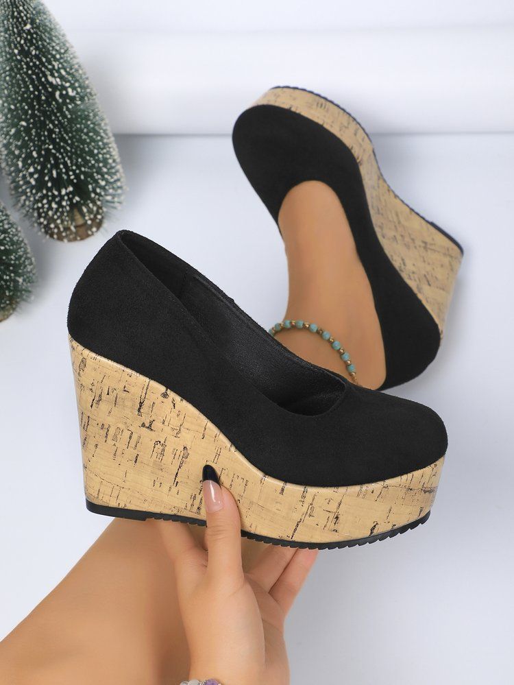 유럽과 미국의 국경 간 플러스 사이즈 웨지 힐 하이힐 신발 여성의 2024 가을 새로운 얕은 입 대외 무역 페달 신발 여성 신발스토어 가기