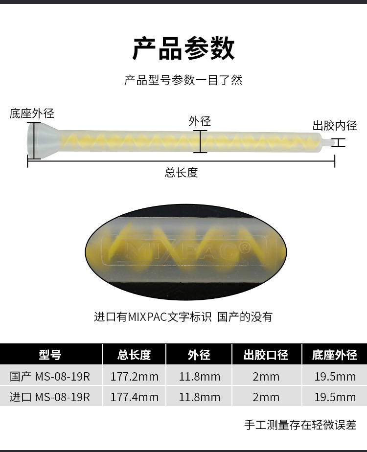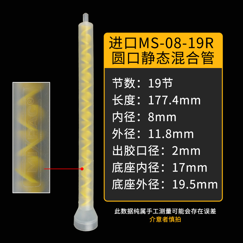 나선형 라운드 혼합 튜브 MS08-19R 벨 입 분배 혼합 튜브 접착제 혼합 정적 혼합 튜브
