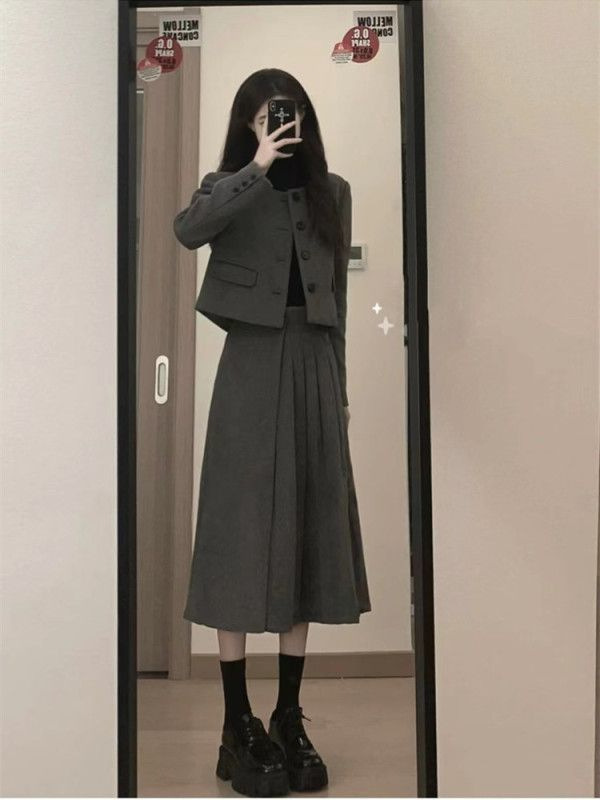 오리지널 품질 모직 정장 스커트, 여성용 짧은 코트, 투피스 스커트스토어 가기