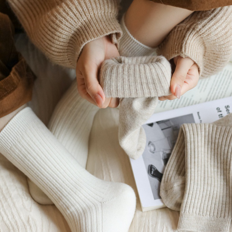 袜子女秋冬新品韩系复古民族风银丝立体羊毛花纹女袜混纺堆堆袜子 RMB:5.30