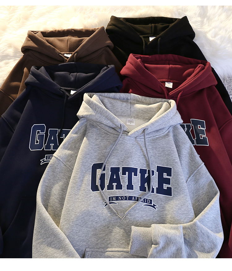 헤비 조커 후드 스웨트 셔츠 남자의 가을과 겨울 기모 2024 새로운 느슨한 오버 사이즈 코트 트렌디 재킷스토어 가기