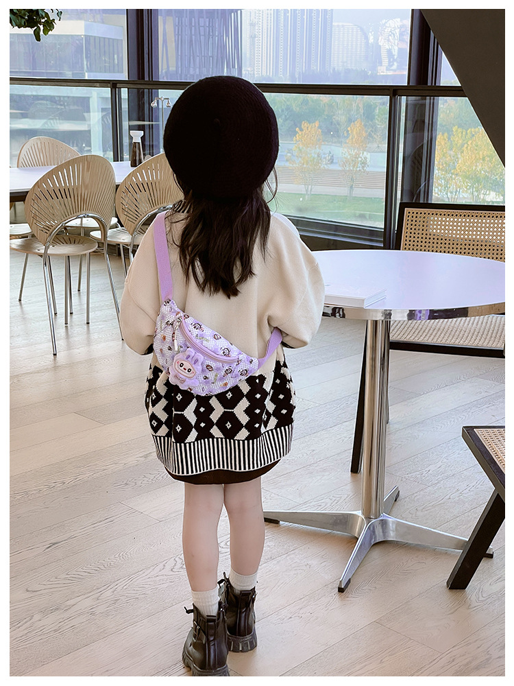 2024 겨울 새로운 어린이 가방 만화 랩 인형 액세서리 허리 가방 옥스포드 천 어깨 크로스 바디 보관 가방스토어 가기