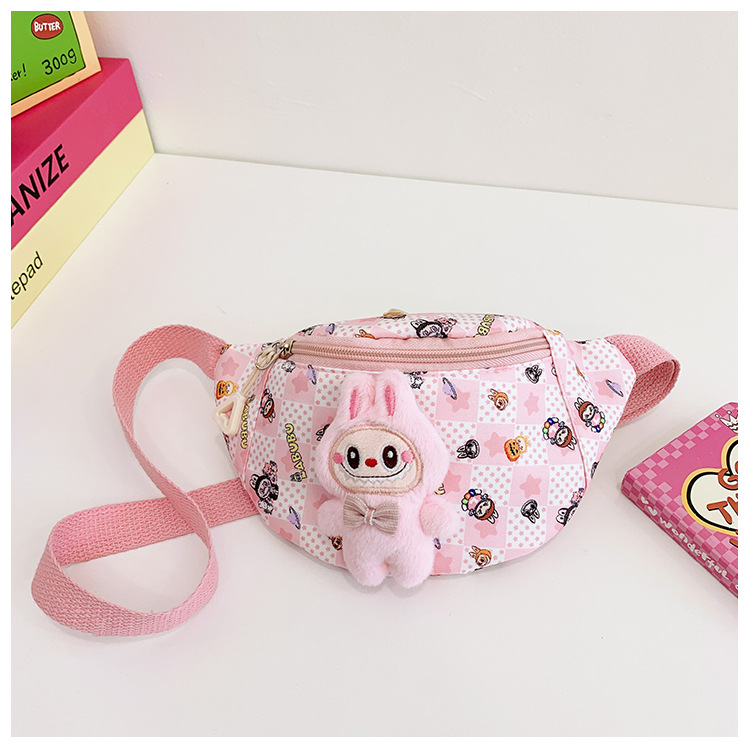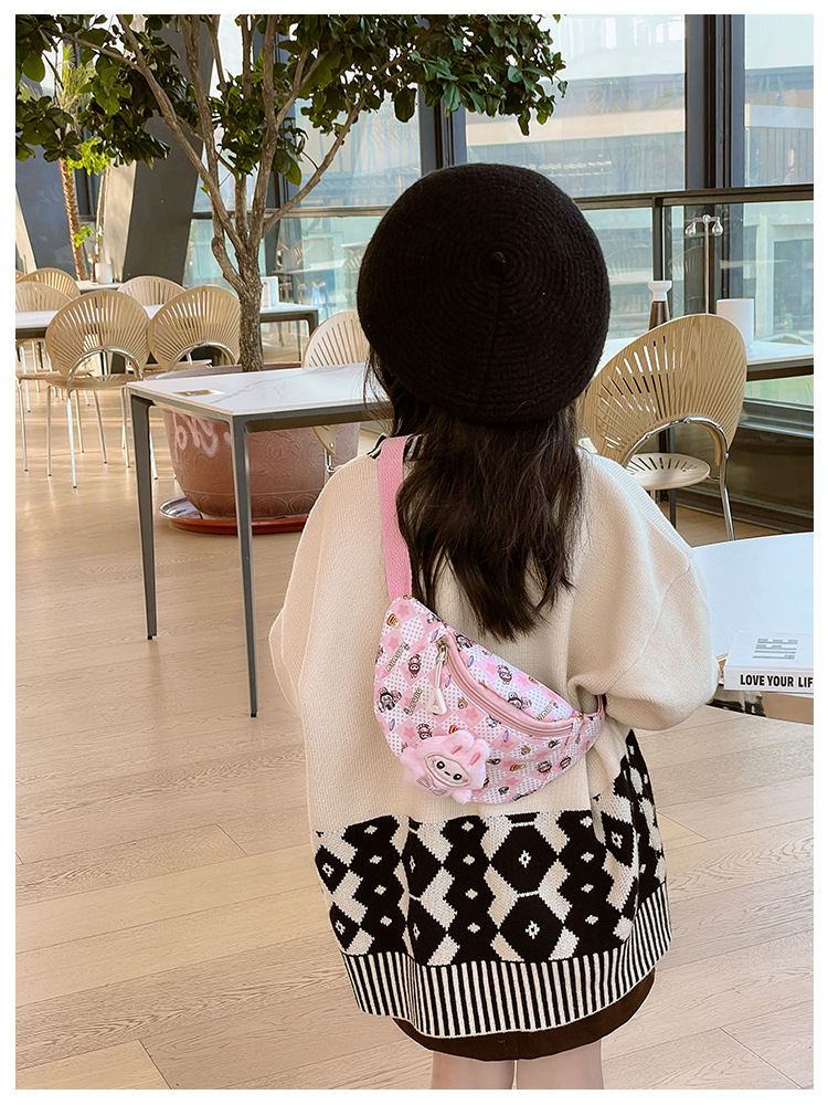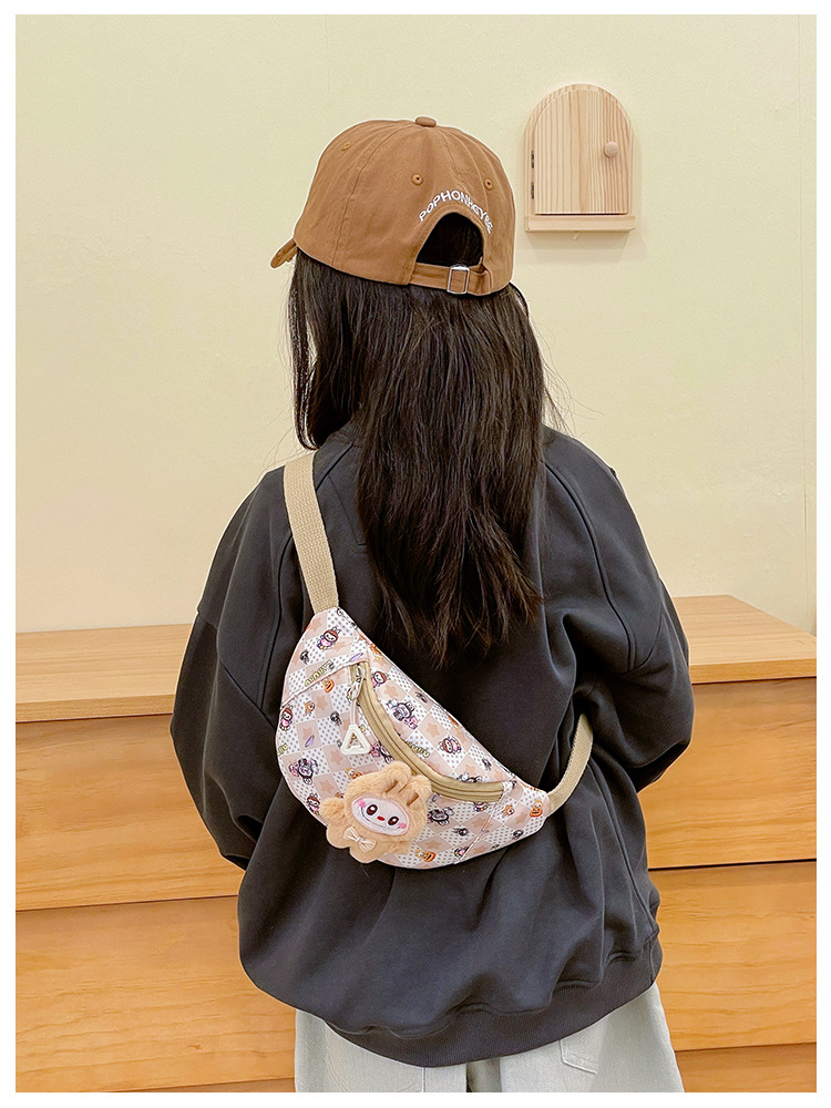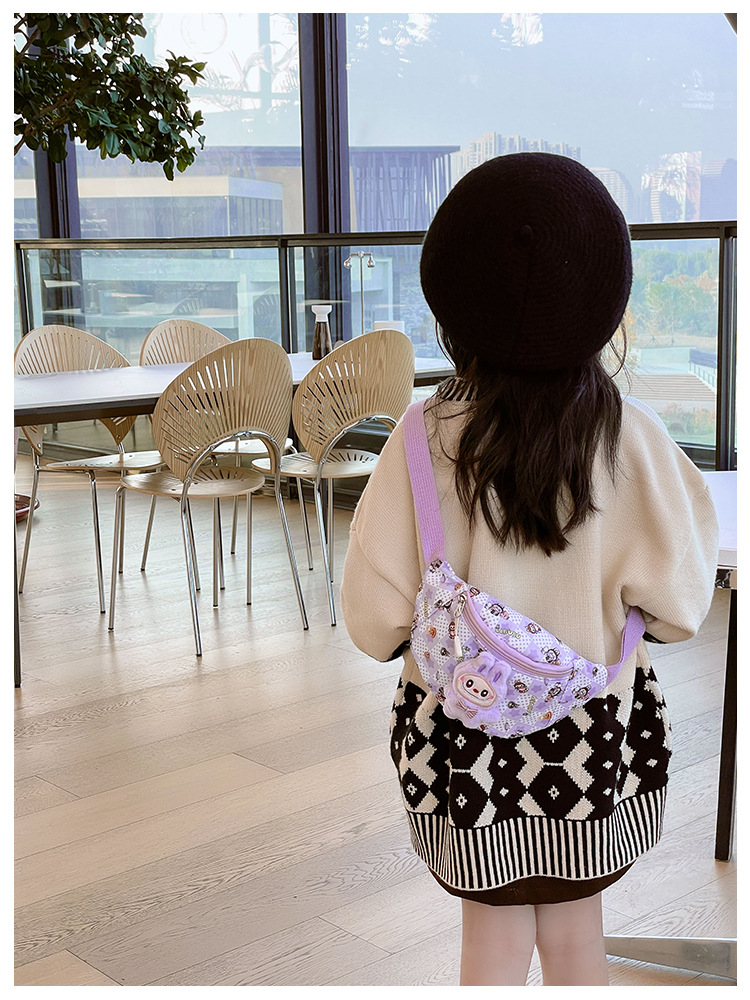2024 겨울 새로운 어린이 가방 만화 랩 인형 액세서리 허리 가방 옥스포드 천 어깨 크로스 바디 보관 가방