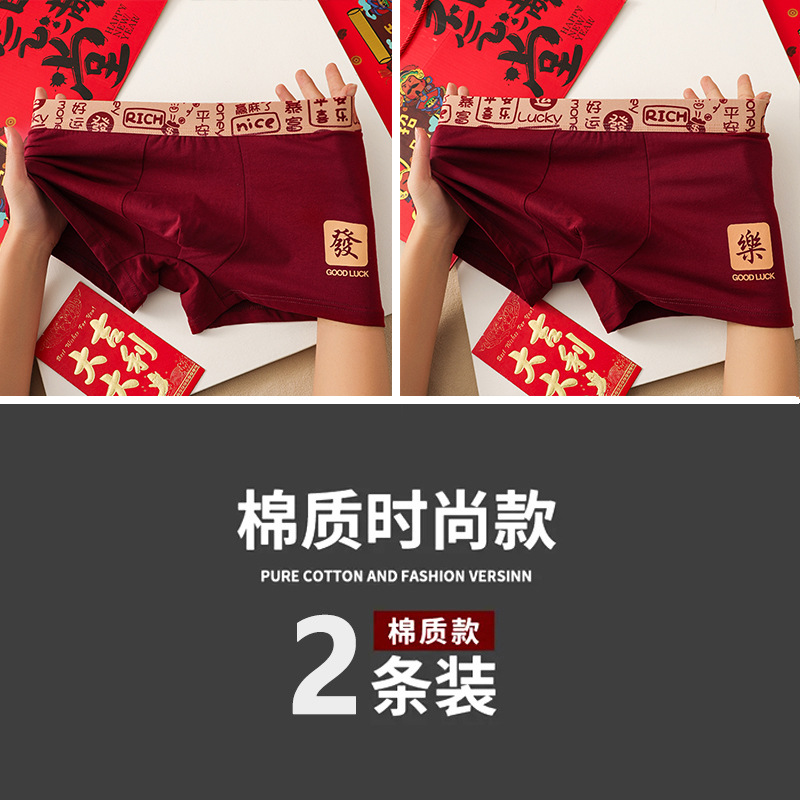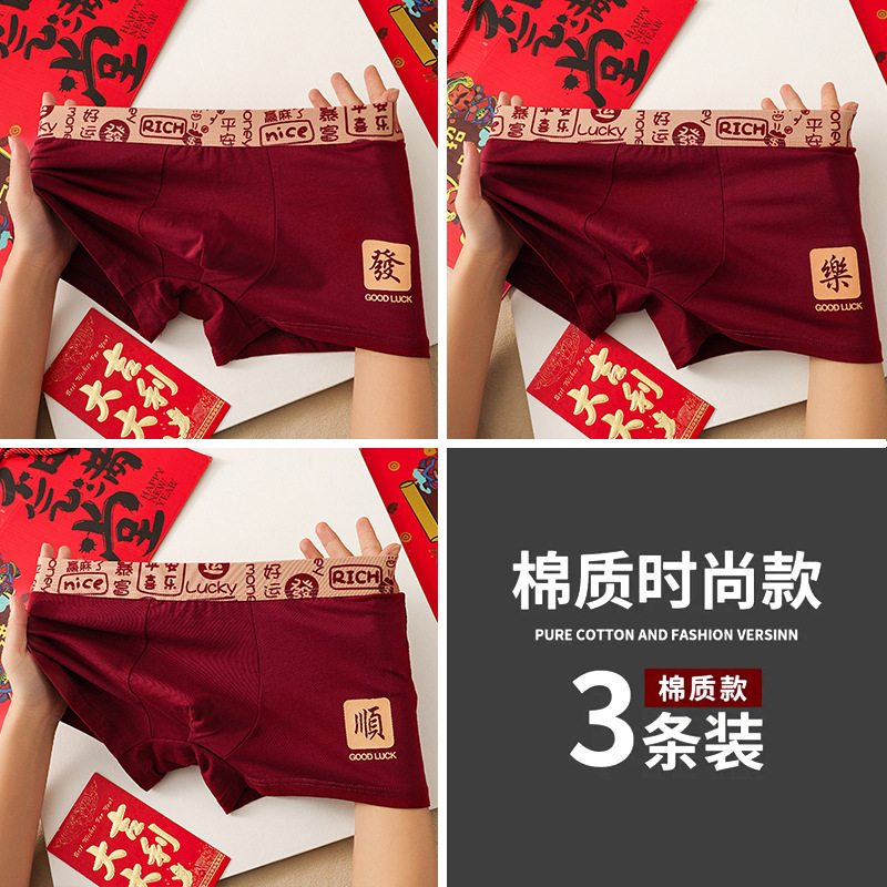 새해 빨간 남자의 순면 속옷 편안한 4 개 코너 가을과 겨울 소년의 유행 복서 짧은 바지