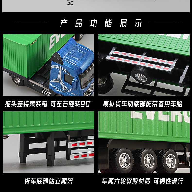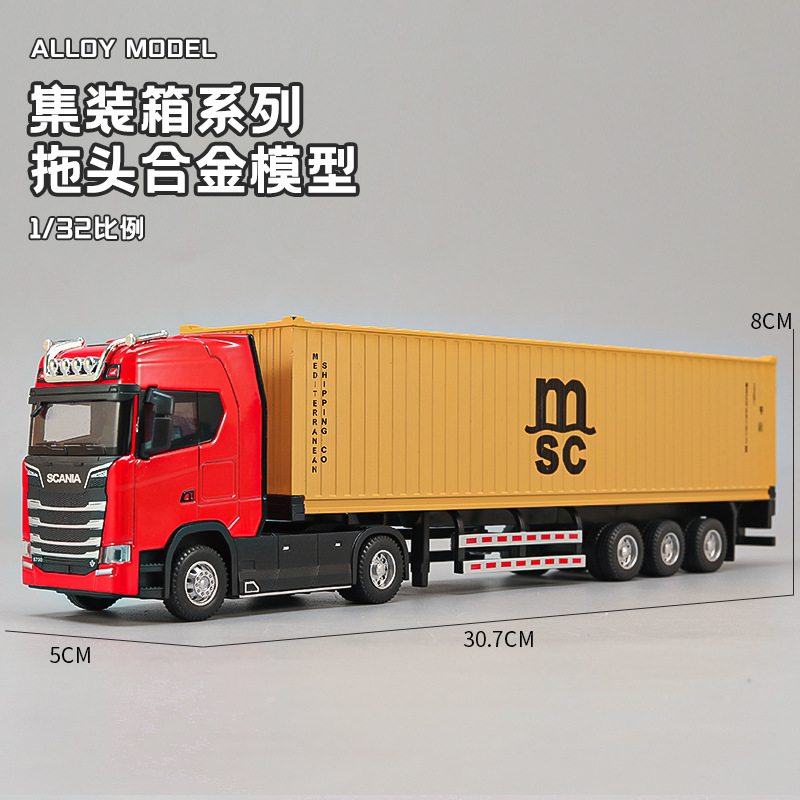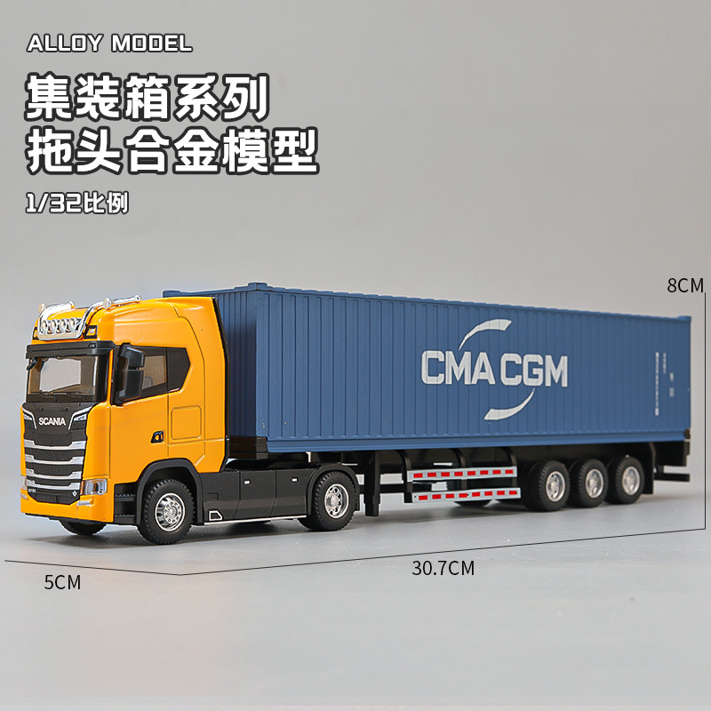 1:32 컨테이너 대형 트럭 트랙터 전체 합금 모델 장식품 오픈 도어 소년 장난감 자동차 선물