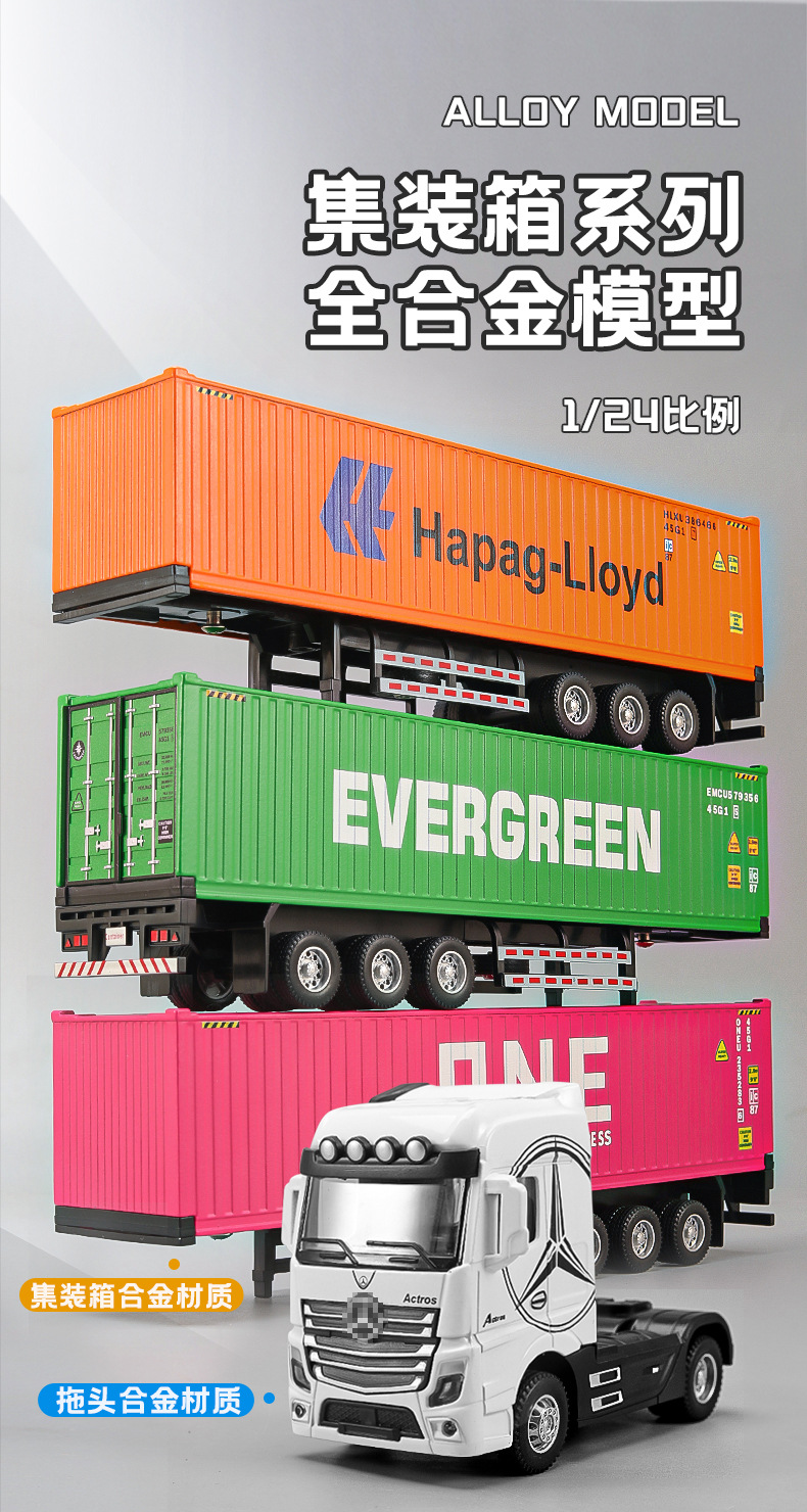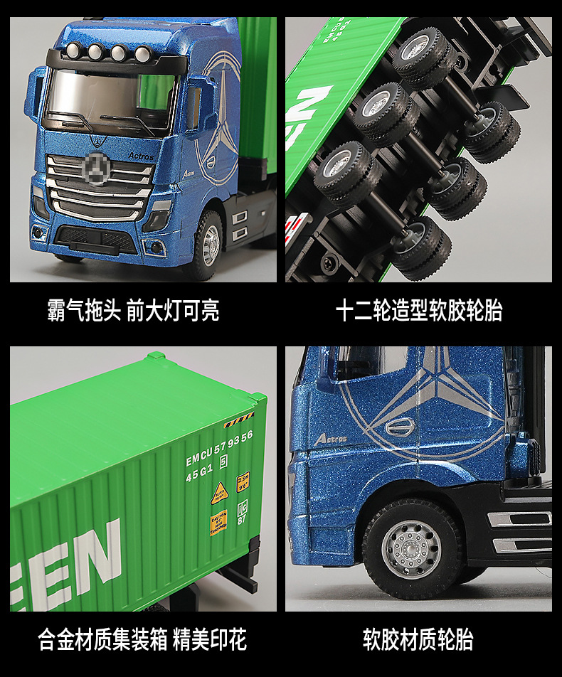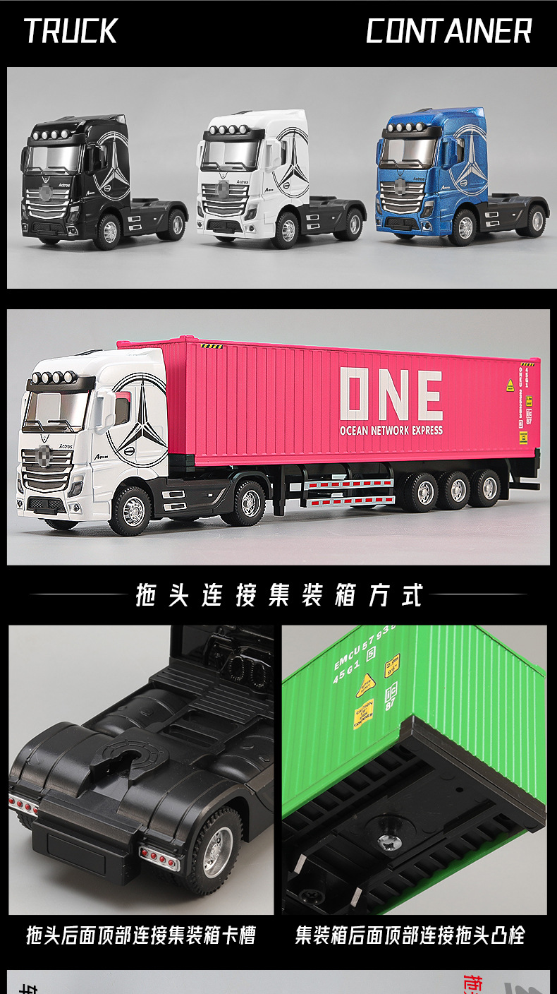 1:32奔驰集装箱重卡拖头卡车全合金模型摆件开门男孩玩具汽车礼物