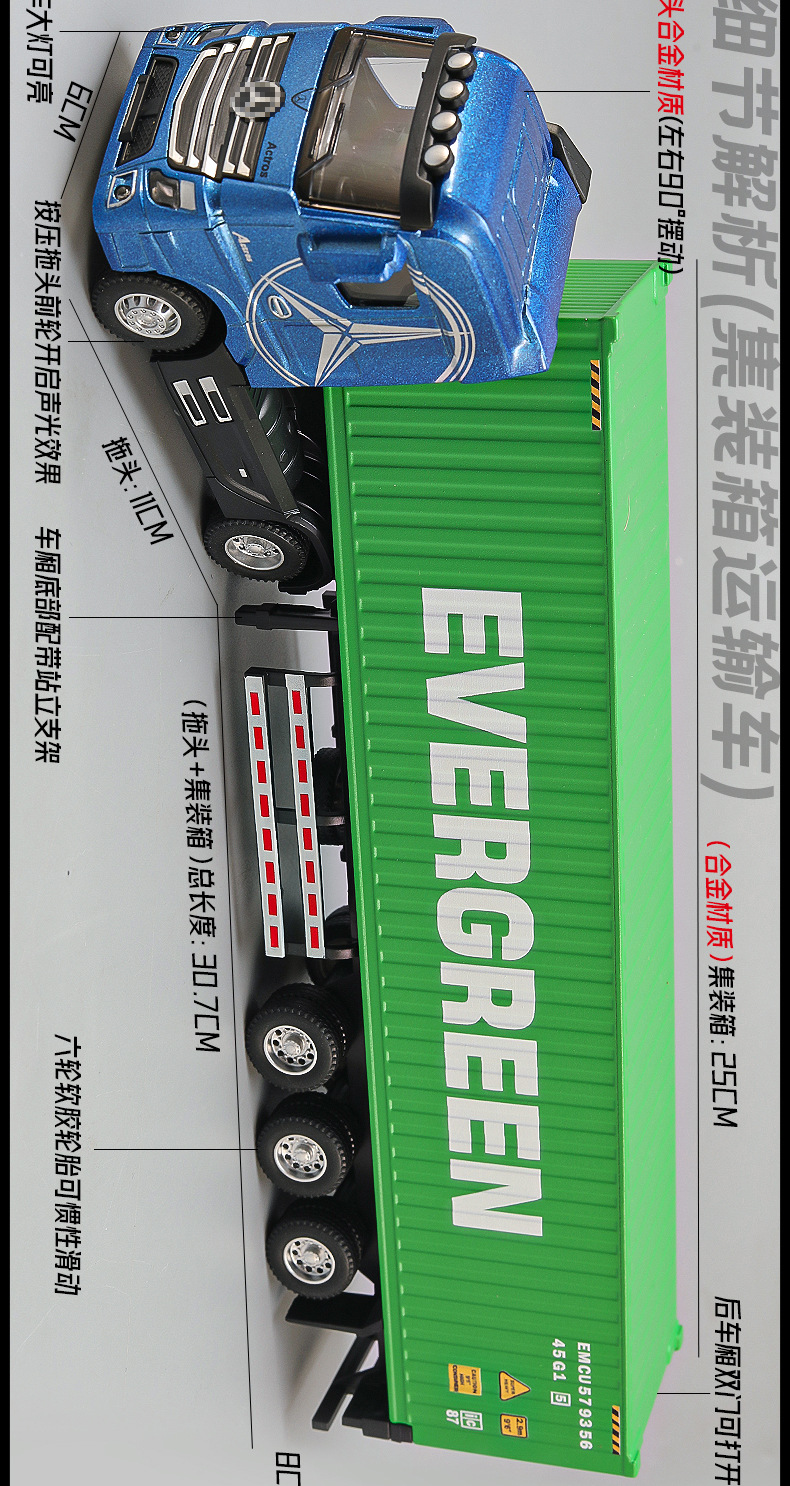 1:32 컨테이너 대형 트럭 트랙터 전체 합금 모델 장식품 오픈 도어 소년 장난감 자동차 선물스토어 가기