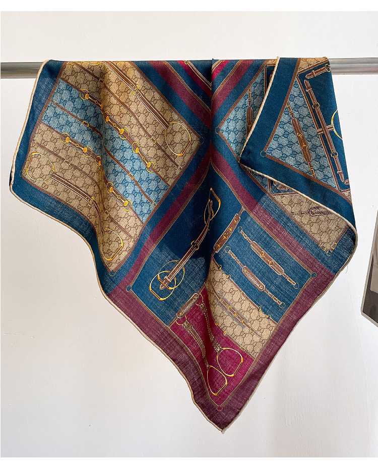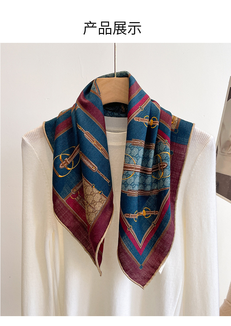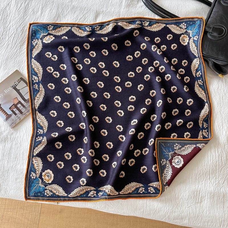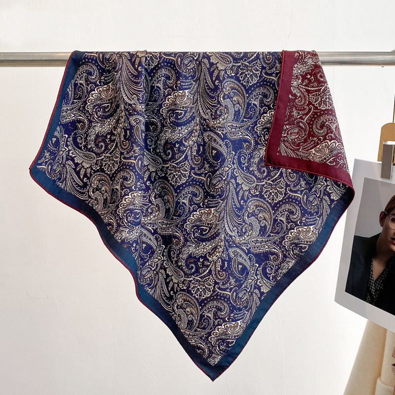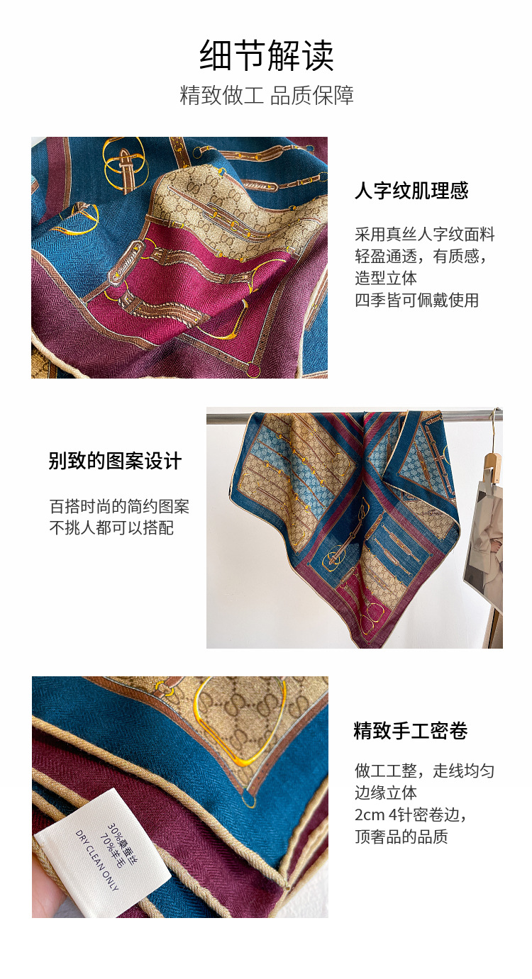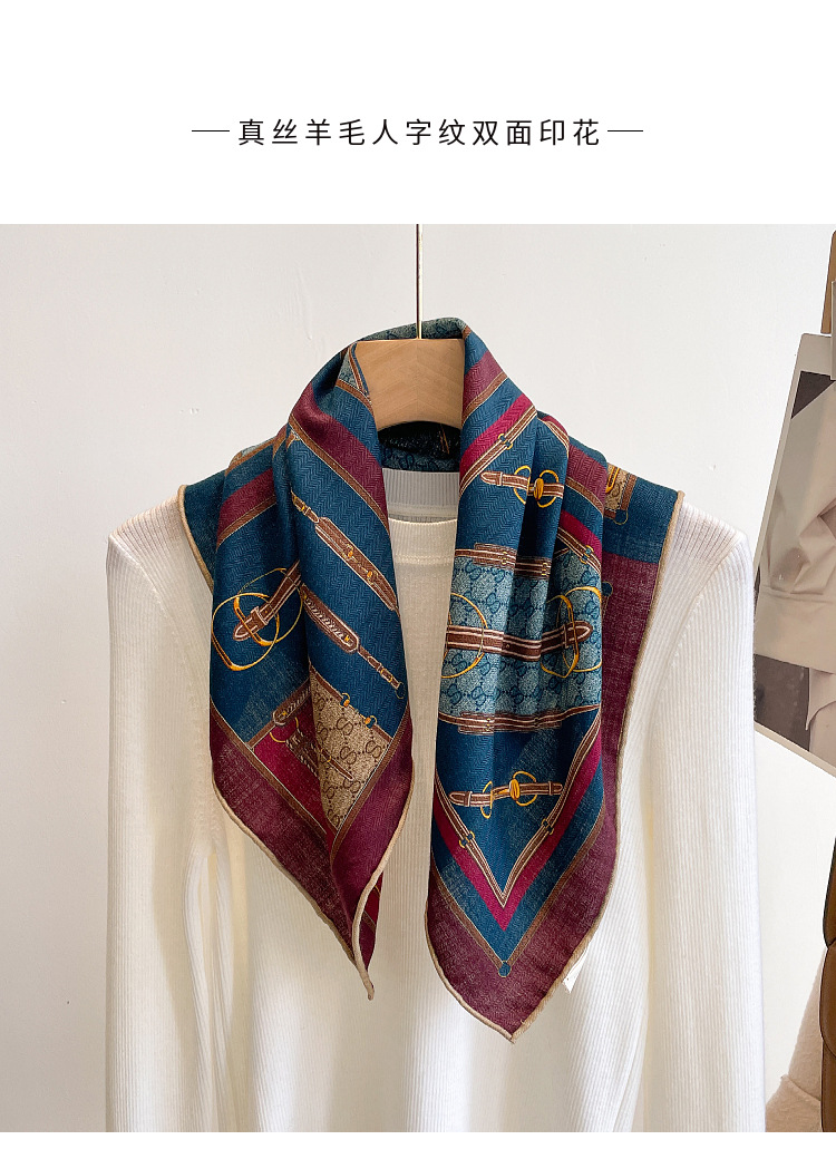 클래식 레트로 70 실크 울 스카프 여성 패션 다용도 실크 울 스카프 양면 동일 색상 보온 스카프