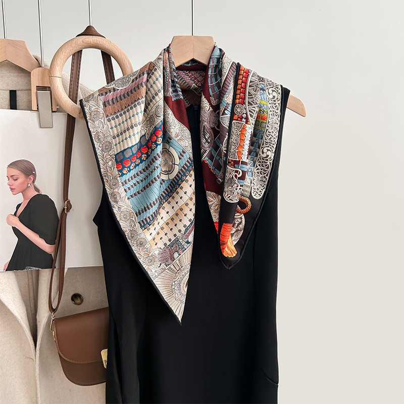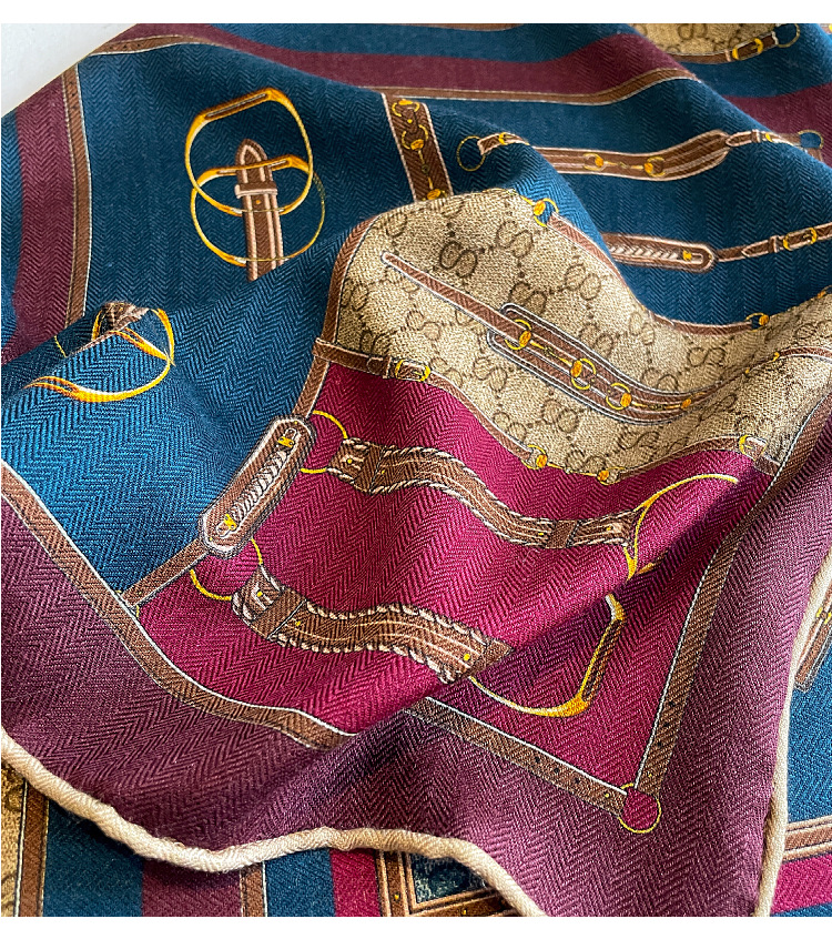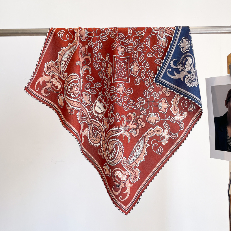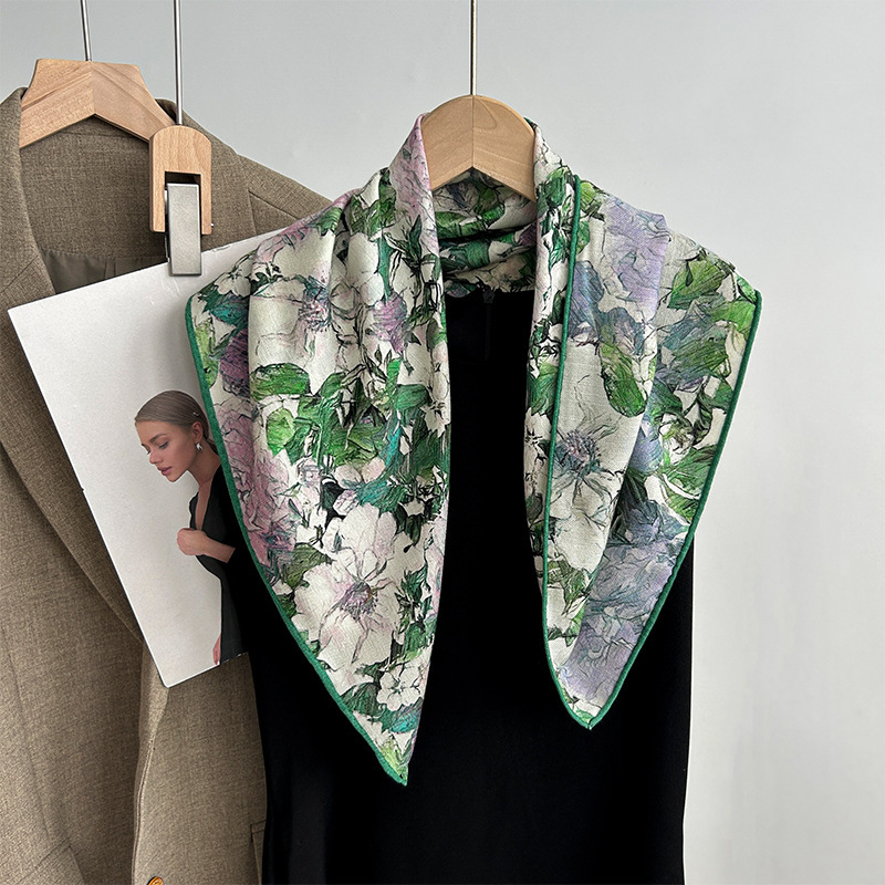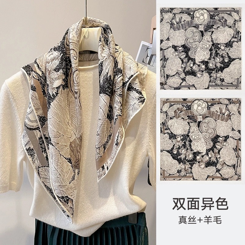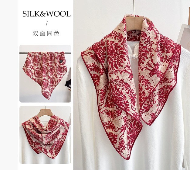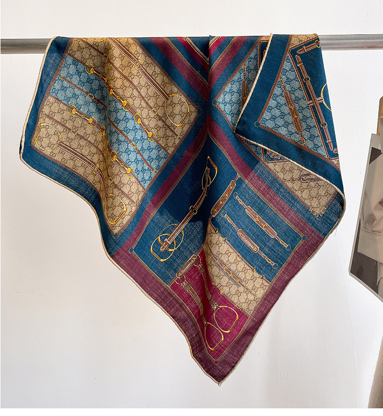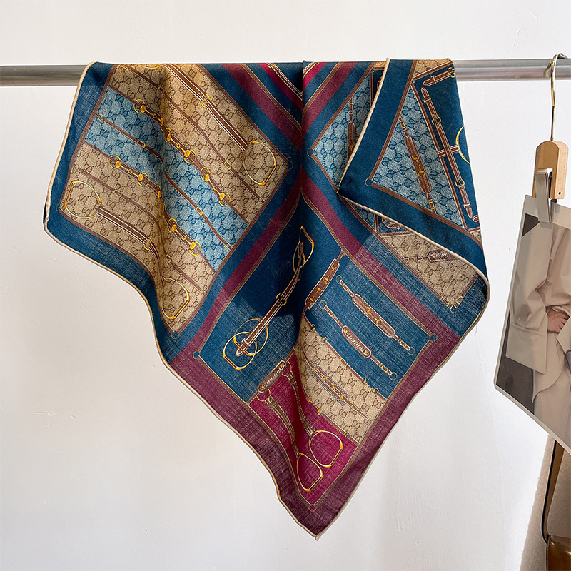 클래식 레트로 70 실크 울 스카프 여성 패션 다용도 실크 울 스카프 양면 동일 색상 보온 스카프
