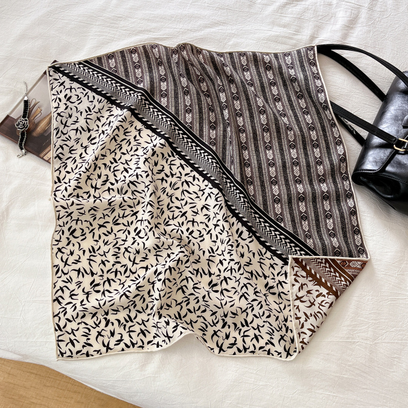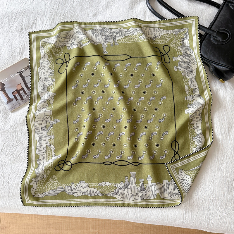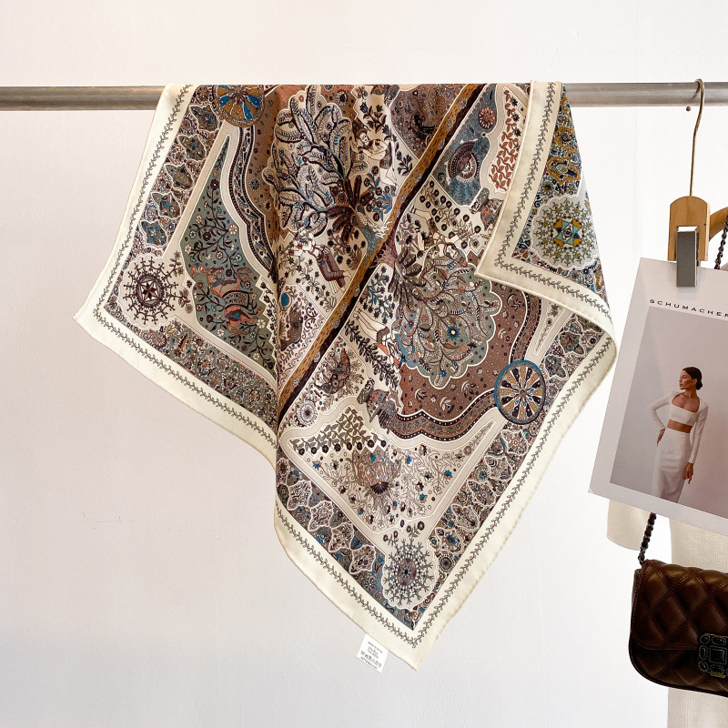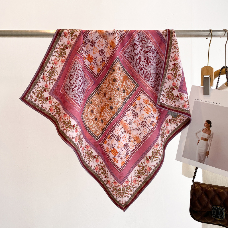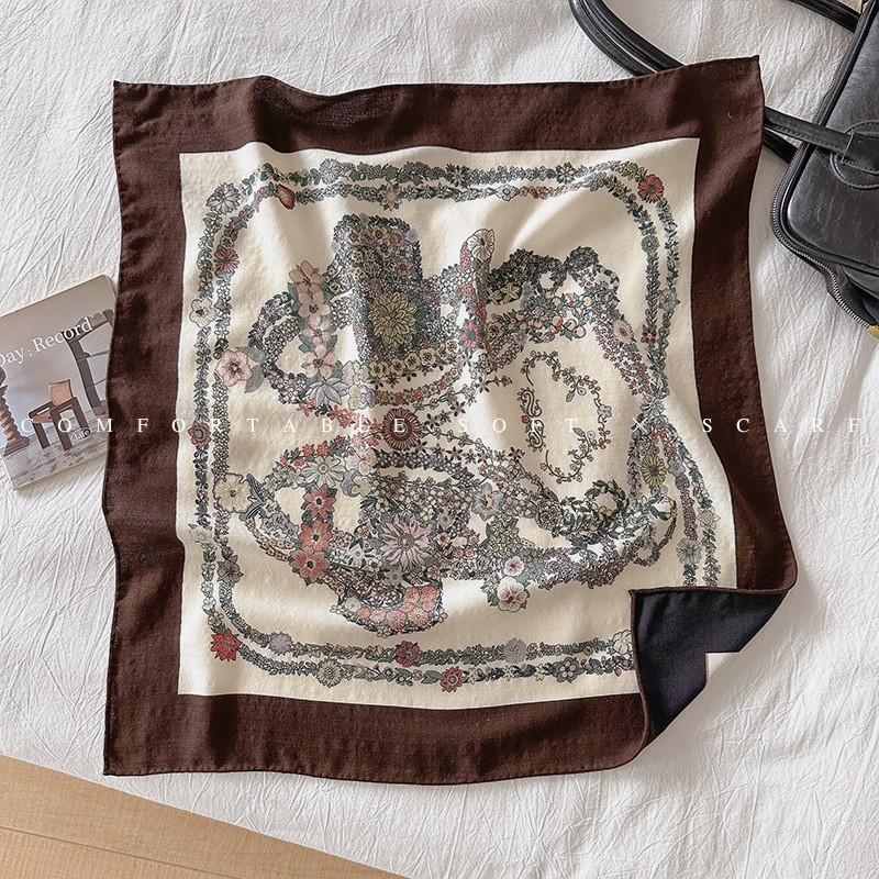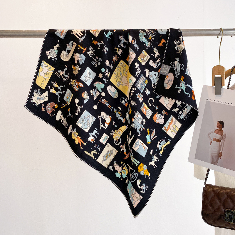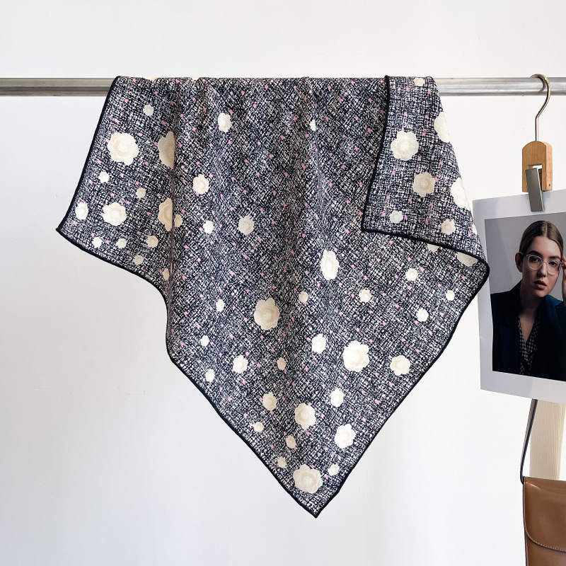 클래식 레트로 70 실크 울 스카프 여성 패션 다용도 실크 울 스카프 양면 동일 색상 보온 스카프