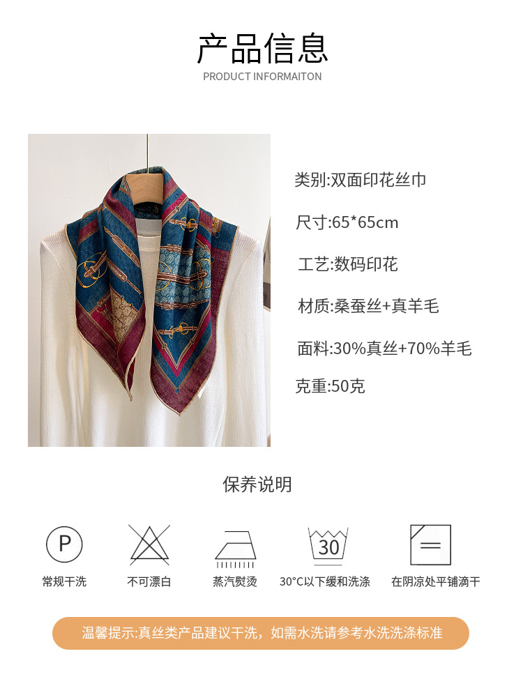 클래식 레트로 70 실크 울 스카프 여성 패션 다용도 실크 울 스카프 양면 동일 색상 보온 스카프스토어 가기