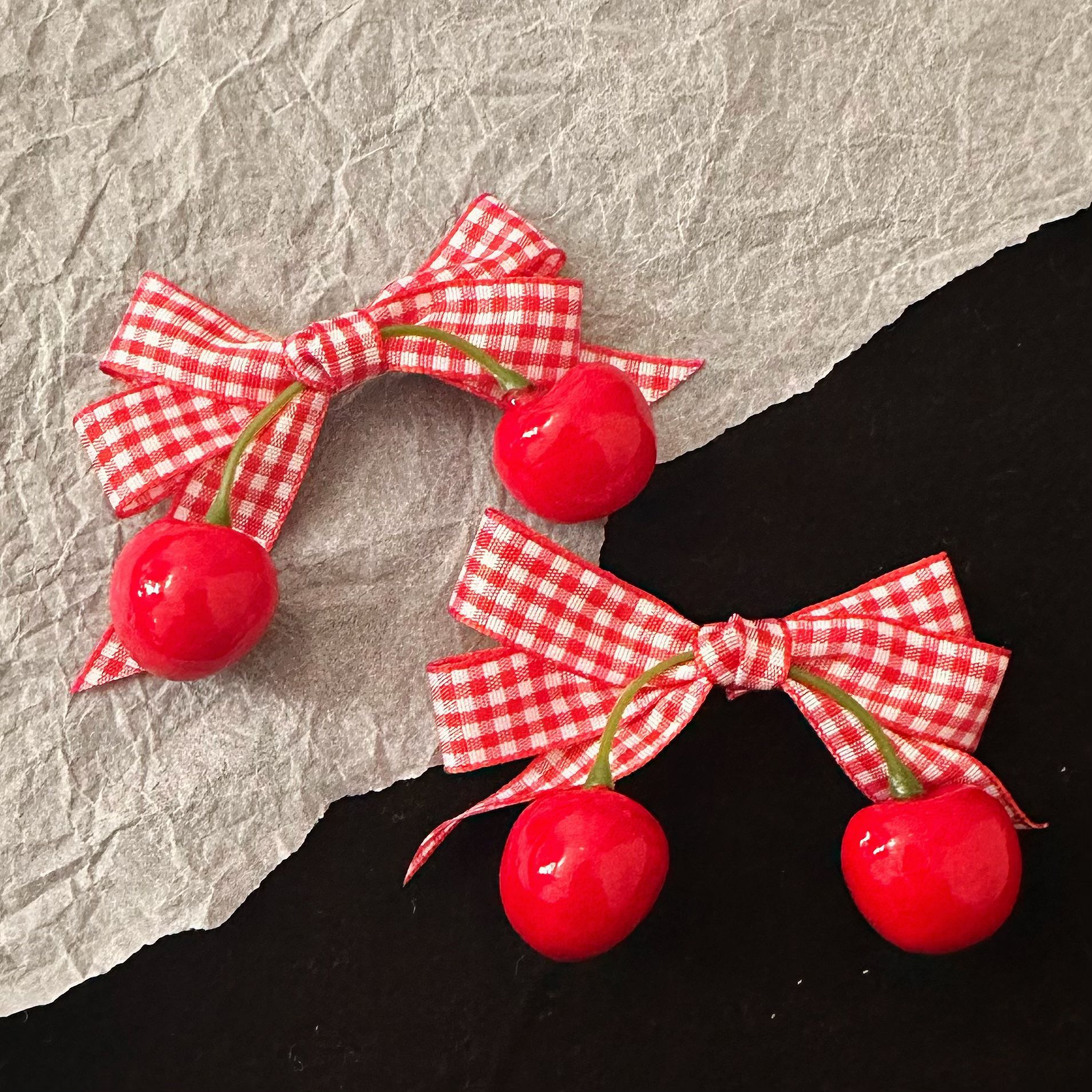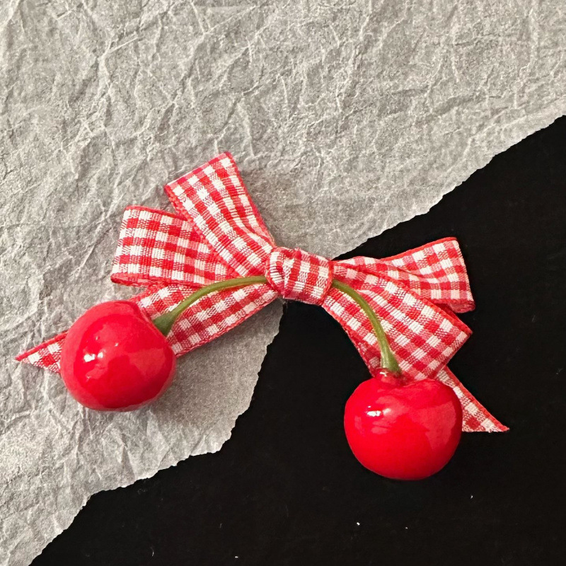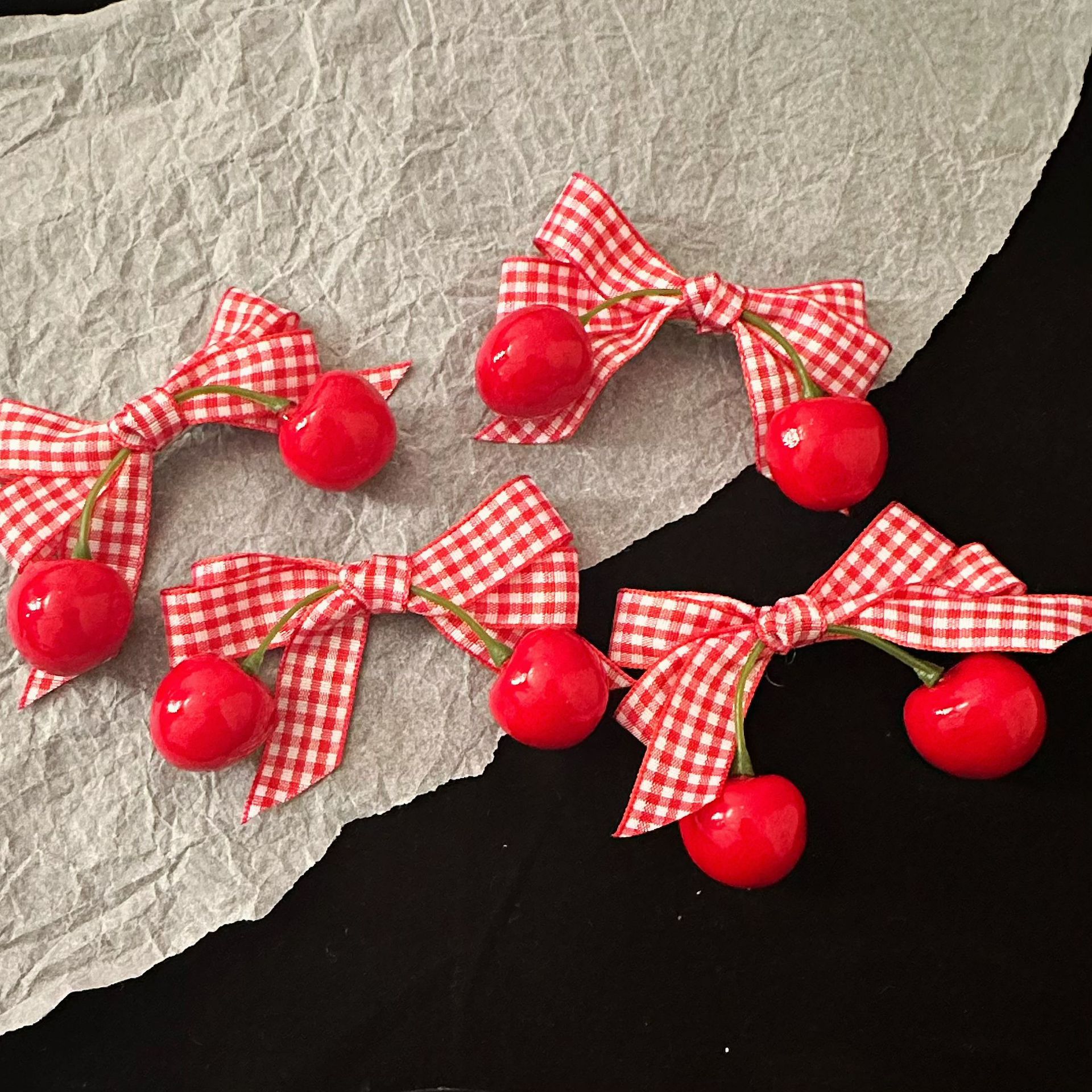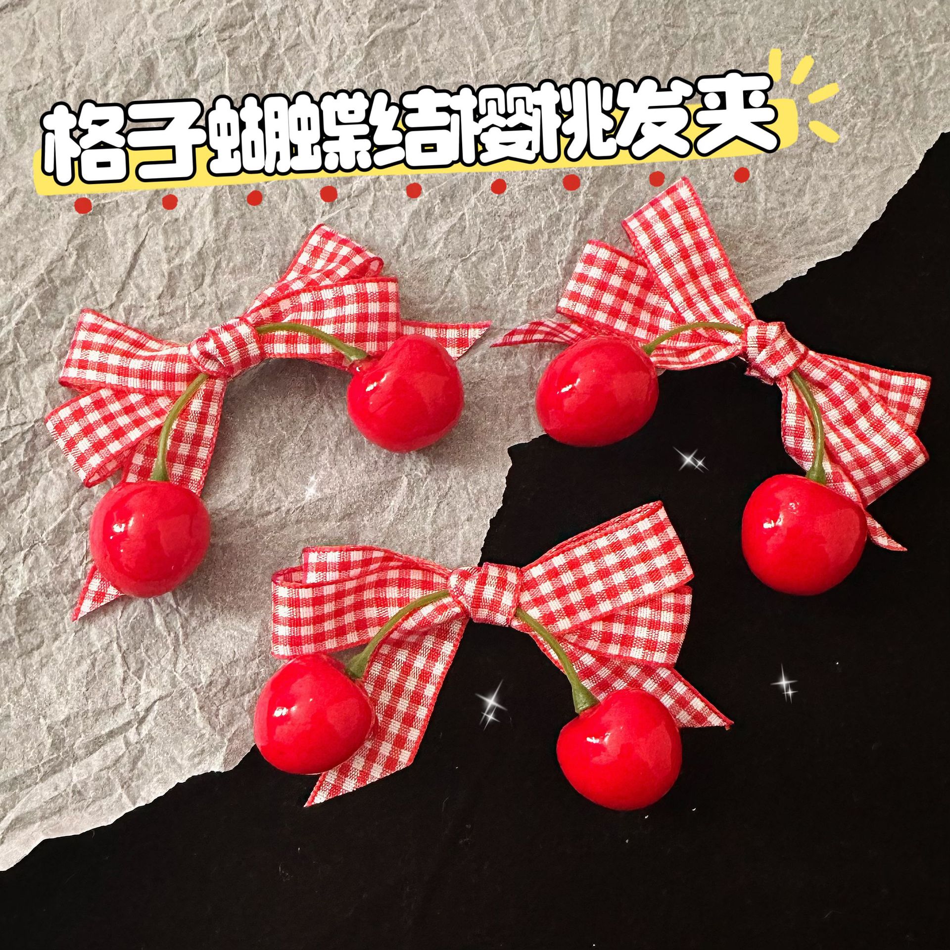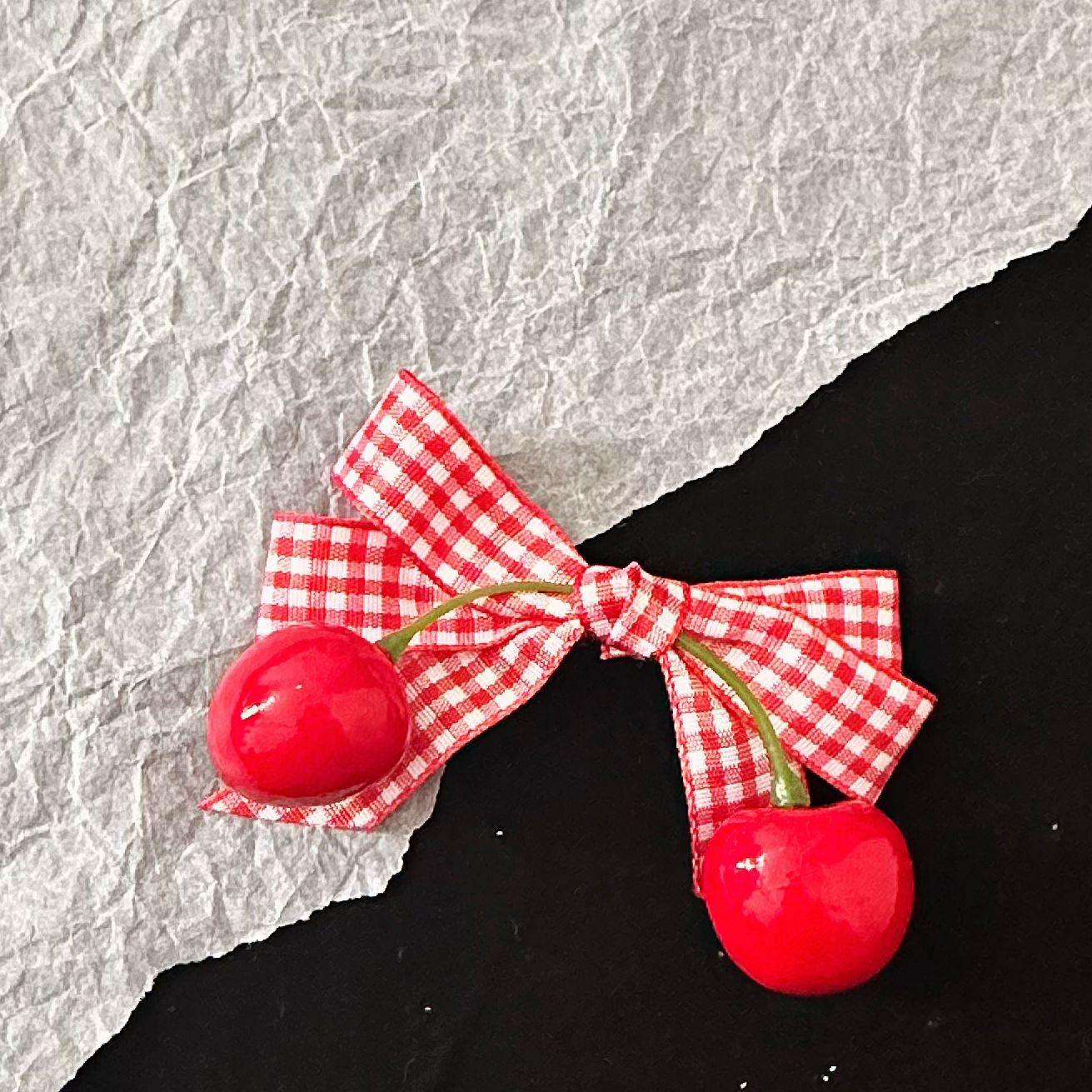 귀여운 격자 무늬 활 체리 헤어핀 달콤한 신선한 학생 스타일 올 매치 뱅 헤어핀 액세서리 헤어 액세서리 봄