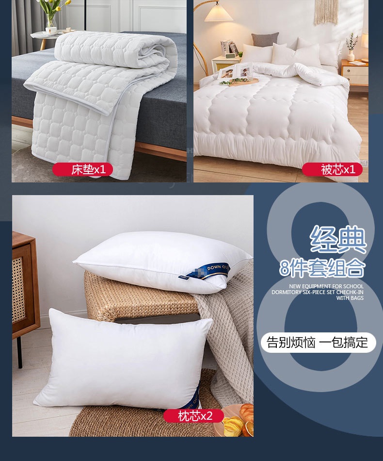 • 1.8m 침대 8종 세트 [이불커버+시트+베개커버2개+베개심2개+이불심+매트리스]