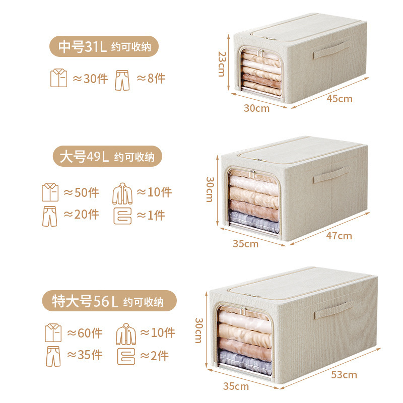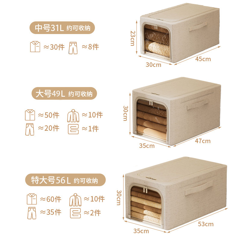 면 및 린넨 심화 된 옷 베이너 상자 가정용 옷장 장난감 이동 저장 상자 휴대용 접이식 저장 상자