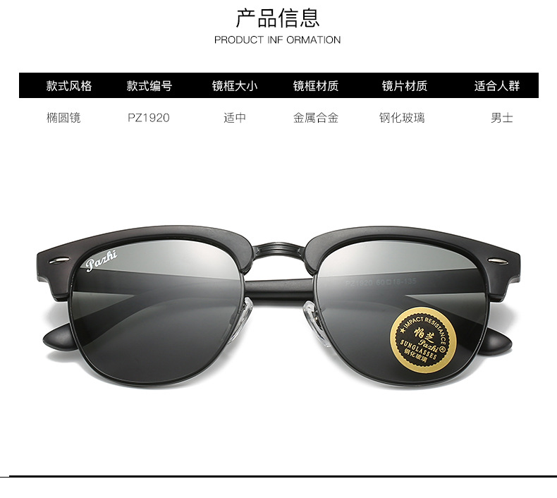 1920 새로운 하프 프레임 선글라스 비행가 선글라스 남성 한류 고글 운전 안경 리틀 레드 북스토어 가기