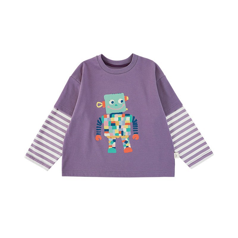 우리부이 남아용 2026년 신상 긴팔 티셔츠 봄가을 프린트 배색 스트라이프 루즈핏 베이스 티셔츠