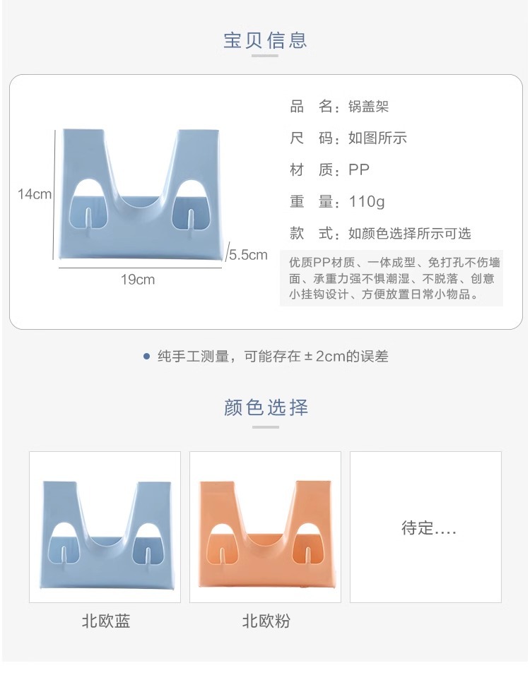 간단한 냄비 커버 랙 스토리지 랙 주방 다기능 벽 장착 케이블 보드 랙 네일 프리 홀프리 후크 주방 랙