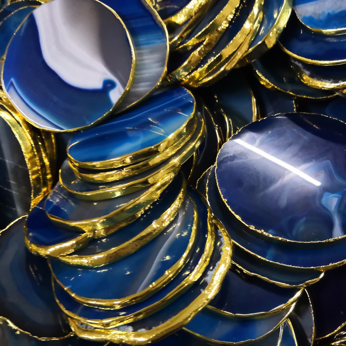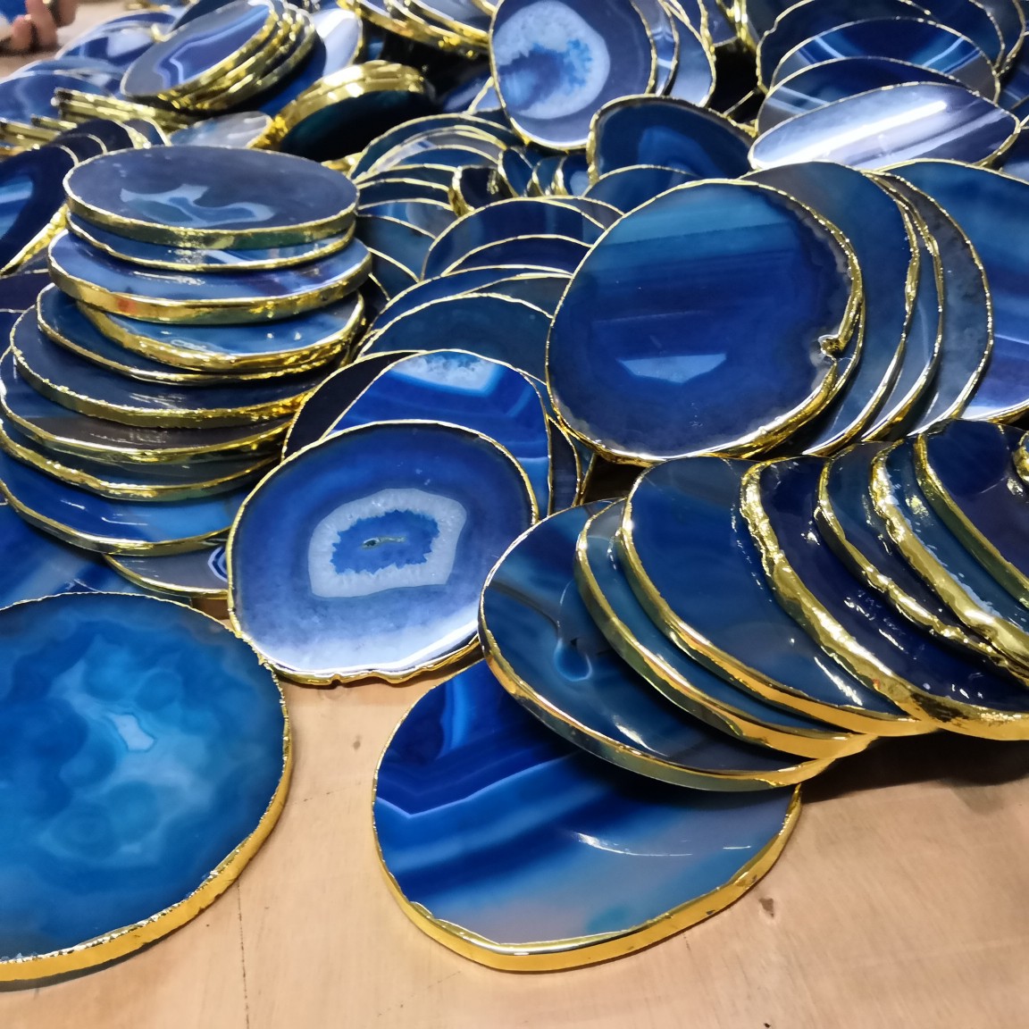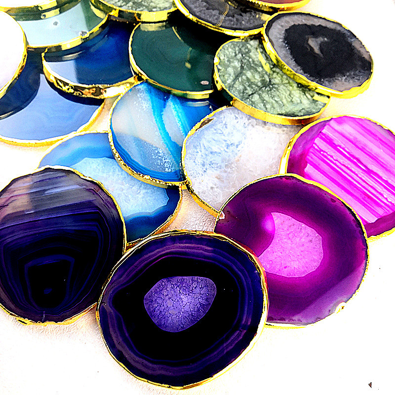 공장 도매 마노 패드 원래 돌 가장자리 마노 컵 패드 전기 도금 프놈펜 블루 그린 옥 조명 홈 액세서리