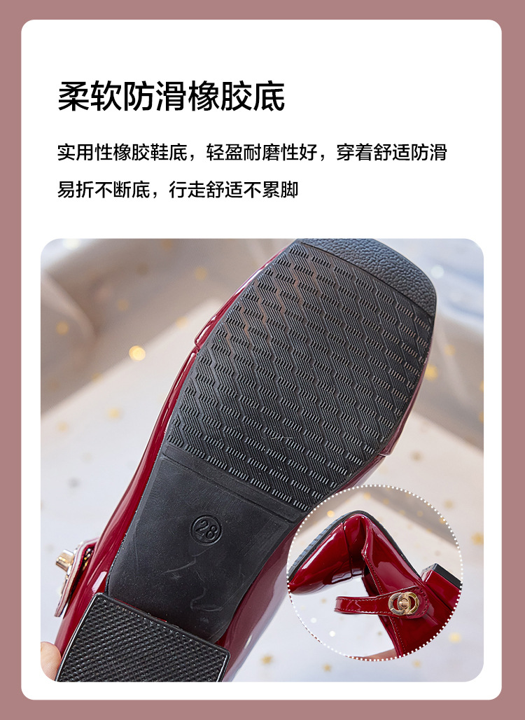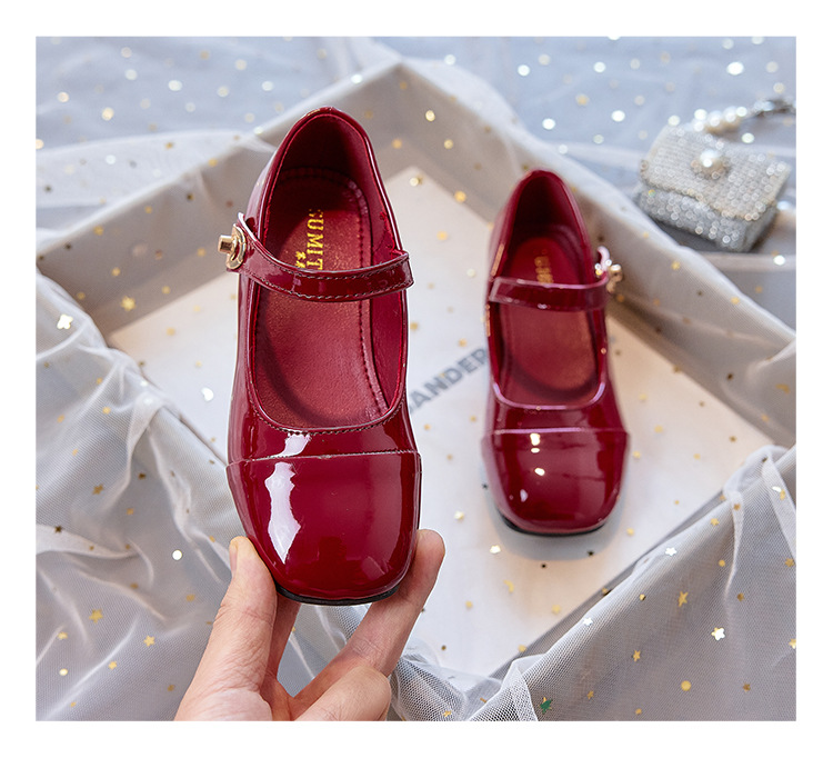 여자 하이힐 어린이 공주 작은 가죽 신발 2025 봄과 가을 새로운 특허 가죽 블랙 부드러운 바닥 아기 신발스토어 가기