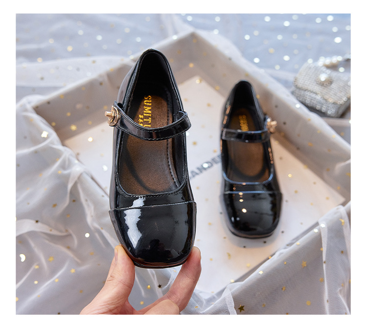 여자 하이힐 어린이 공주 작은 가죽 신발 2025 봄과 가을 새로운 특허 가죽 블랙 부드러운 바닥 아기 신발