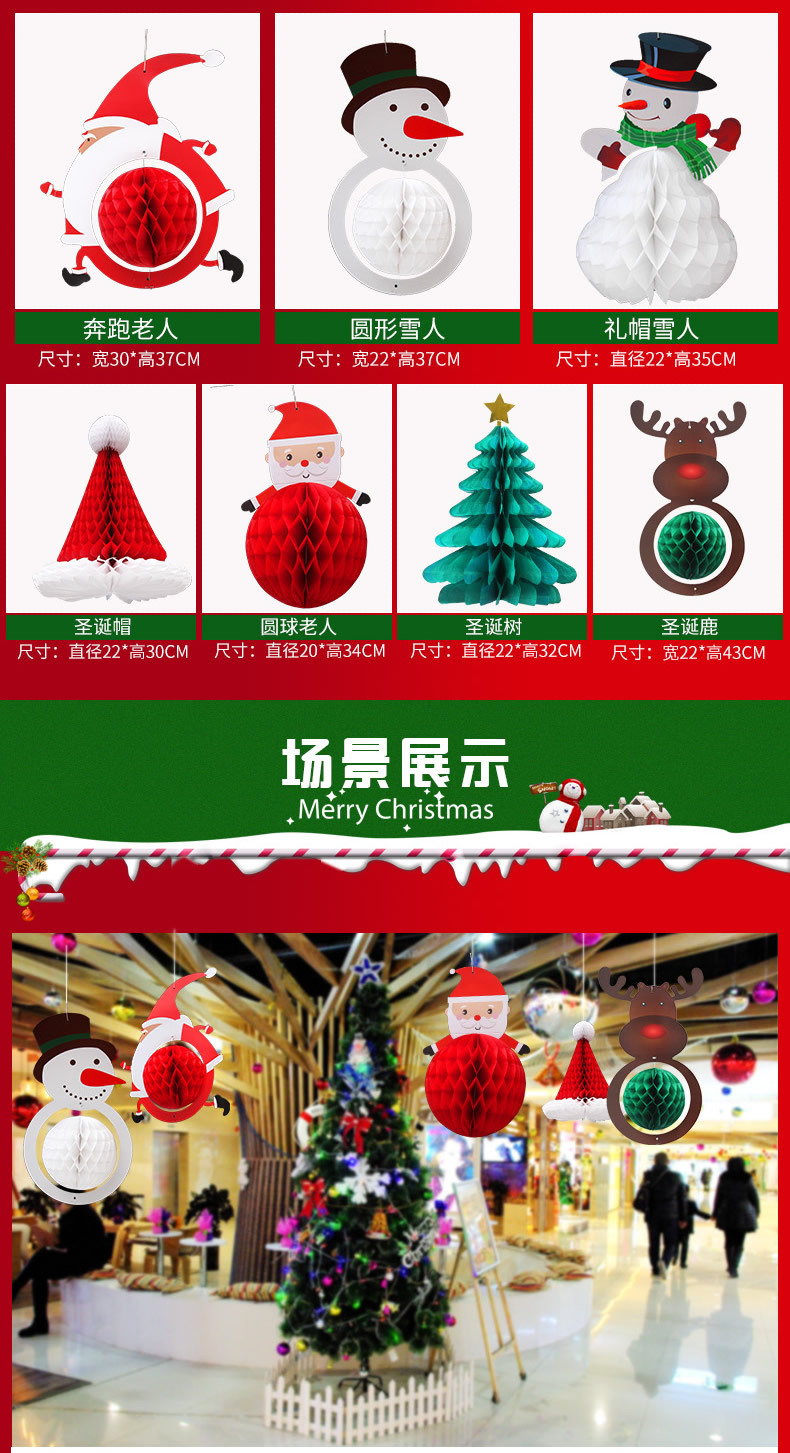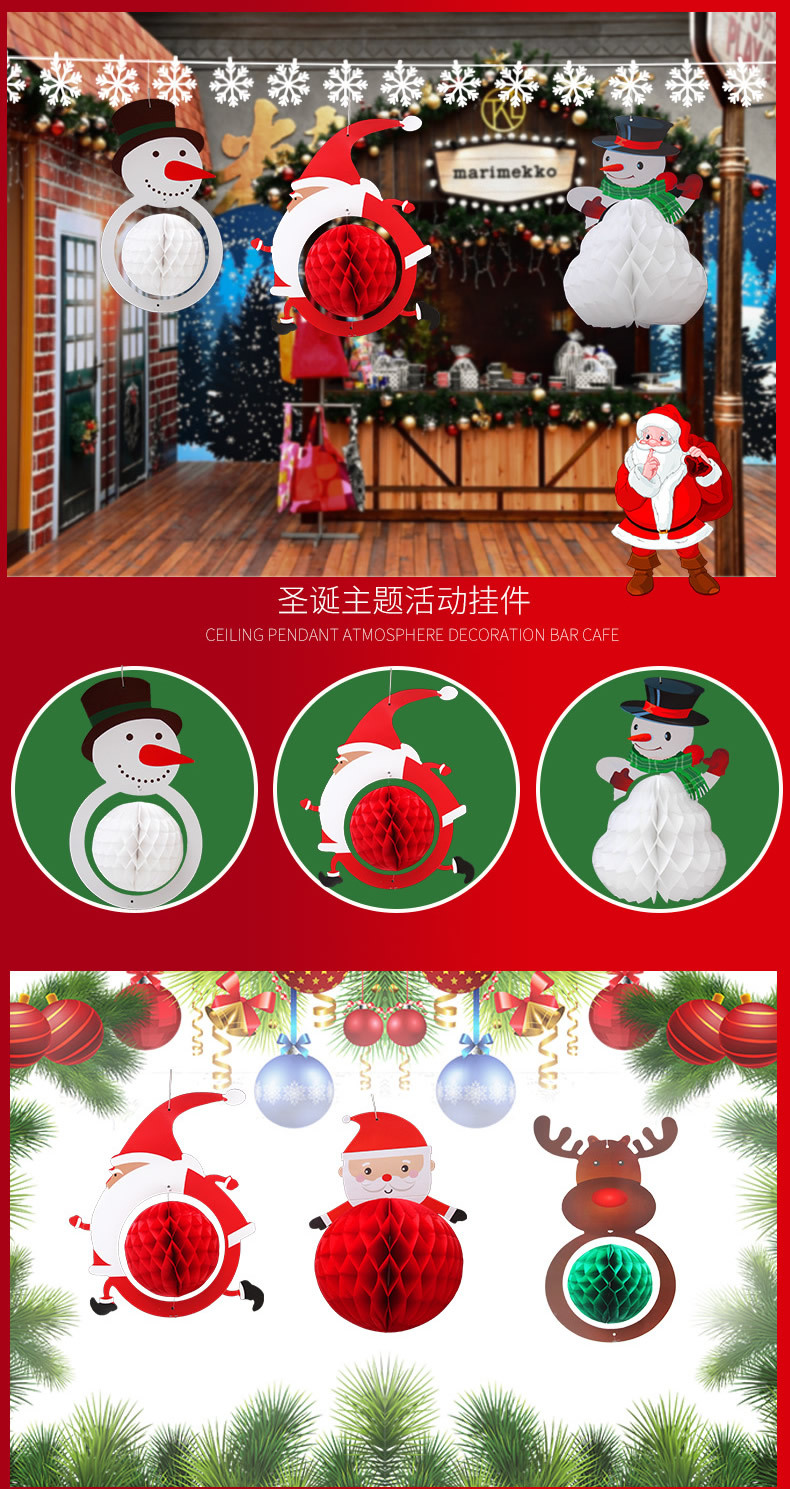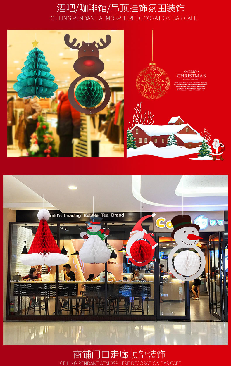 크리스마스 장식 가게 펜던트 벌집 공 크리스마스 트리 노인 눈사람 사슴 모자 장면 레이아웃