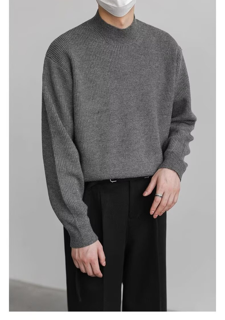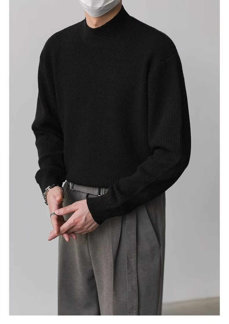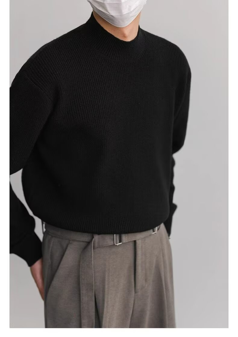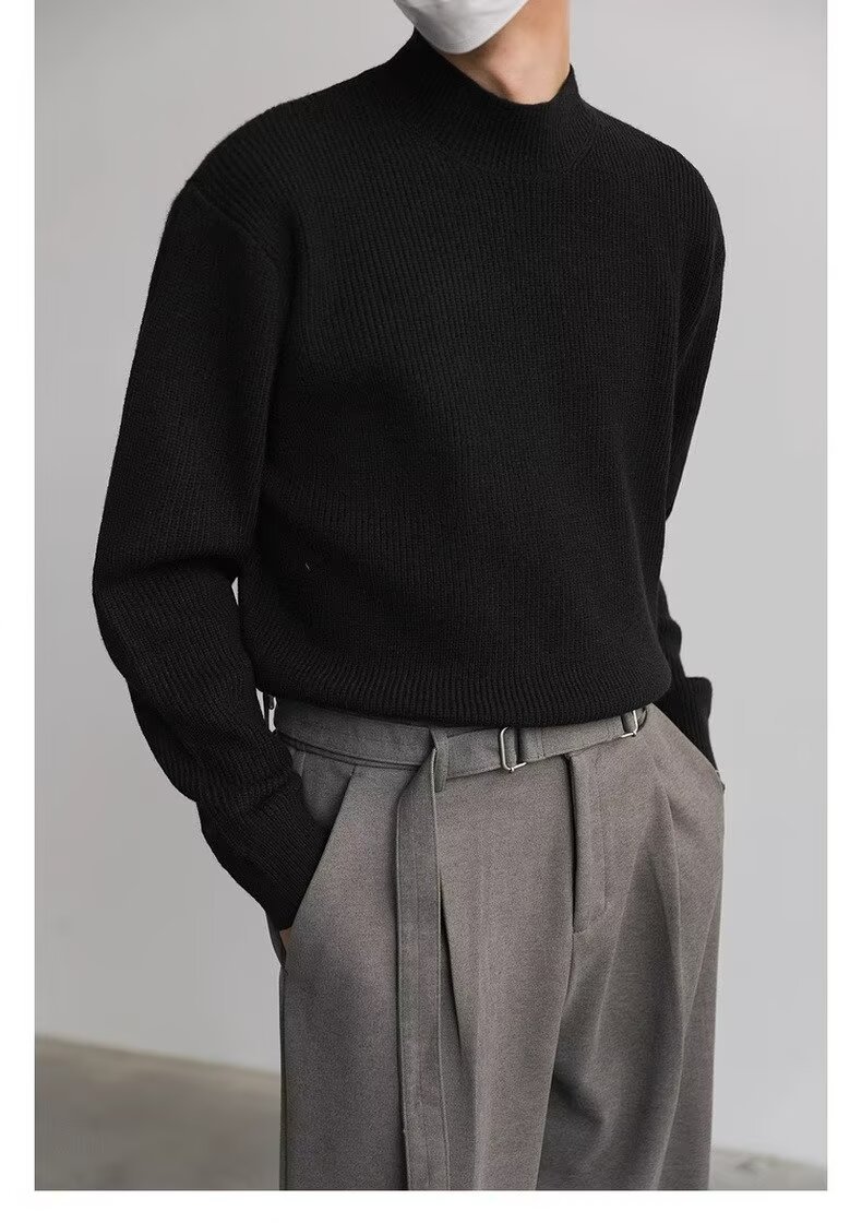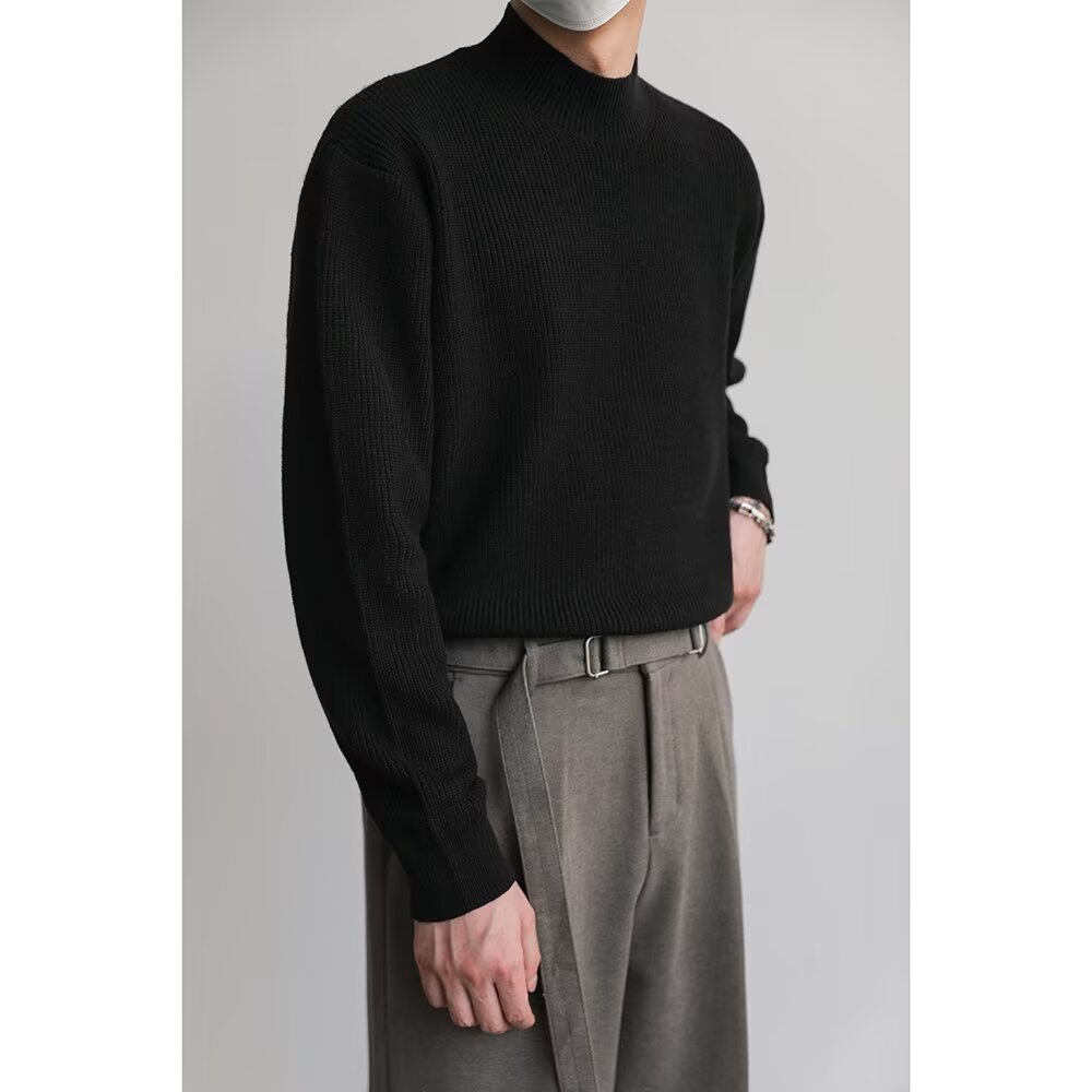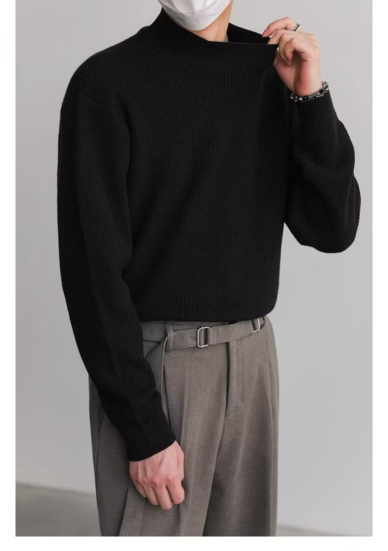 홍콩 스타일 레트로 패션 스웨터 남자 하이 하이 칼라 캐주얼 니트 스웨터 트렌드 한국 솔리드 컬러 틈새 인테리어스토어 가기