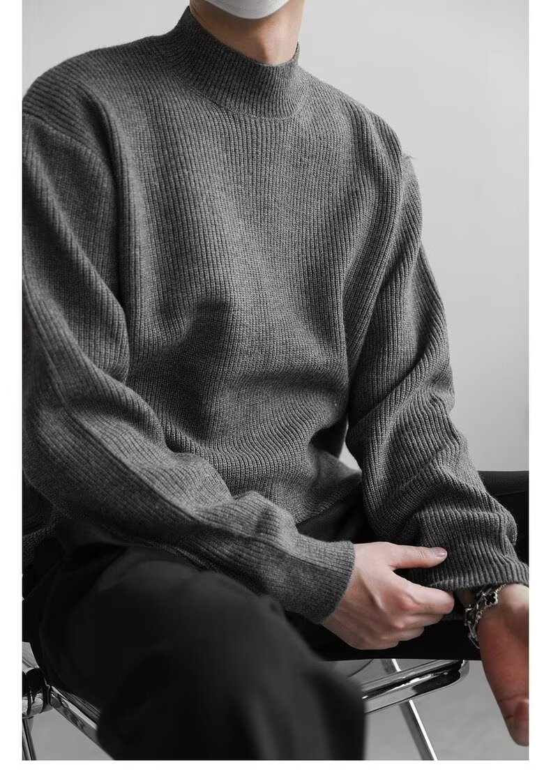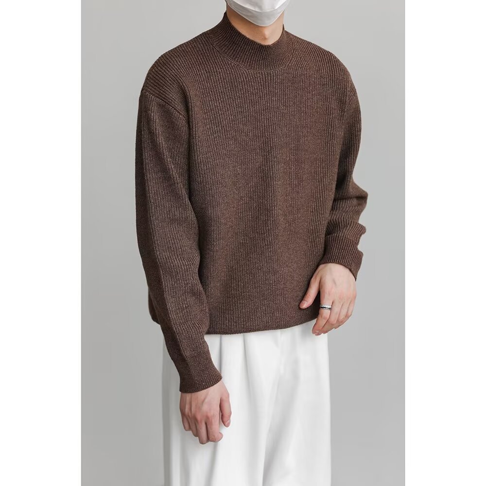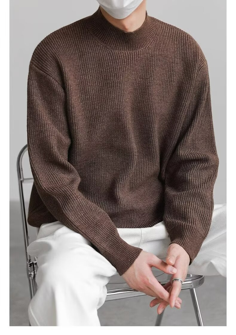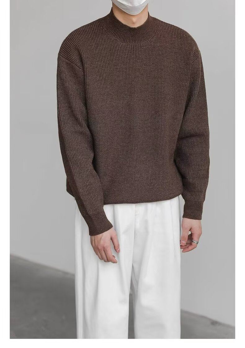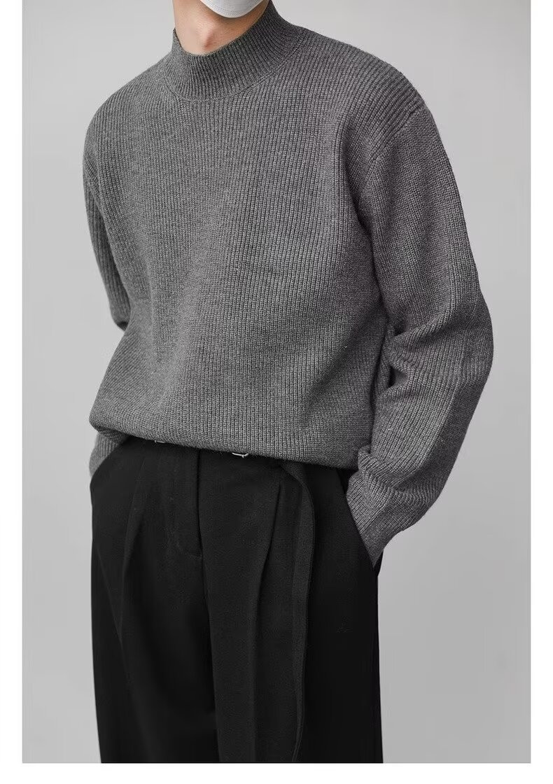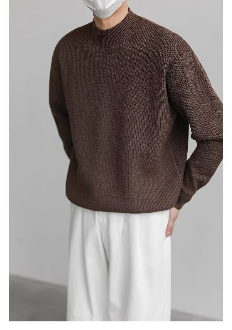 홍콩 스타일 레트로 패션 스웨터 남자 하이 하이 칼라 캐주얼 니트 스웨터 트렌드 한국 솔리드 컬러 틈새 인테리어스토어 가기