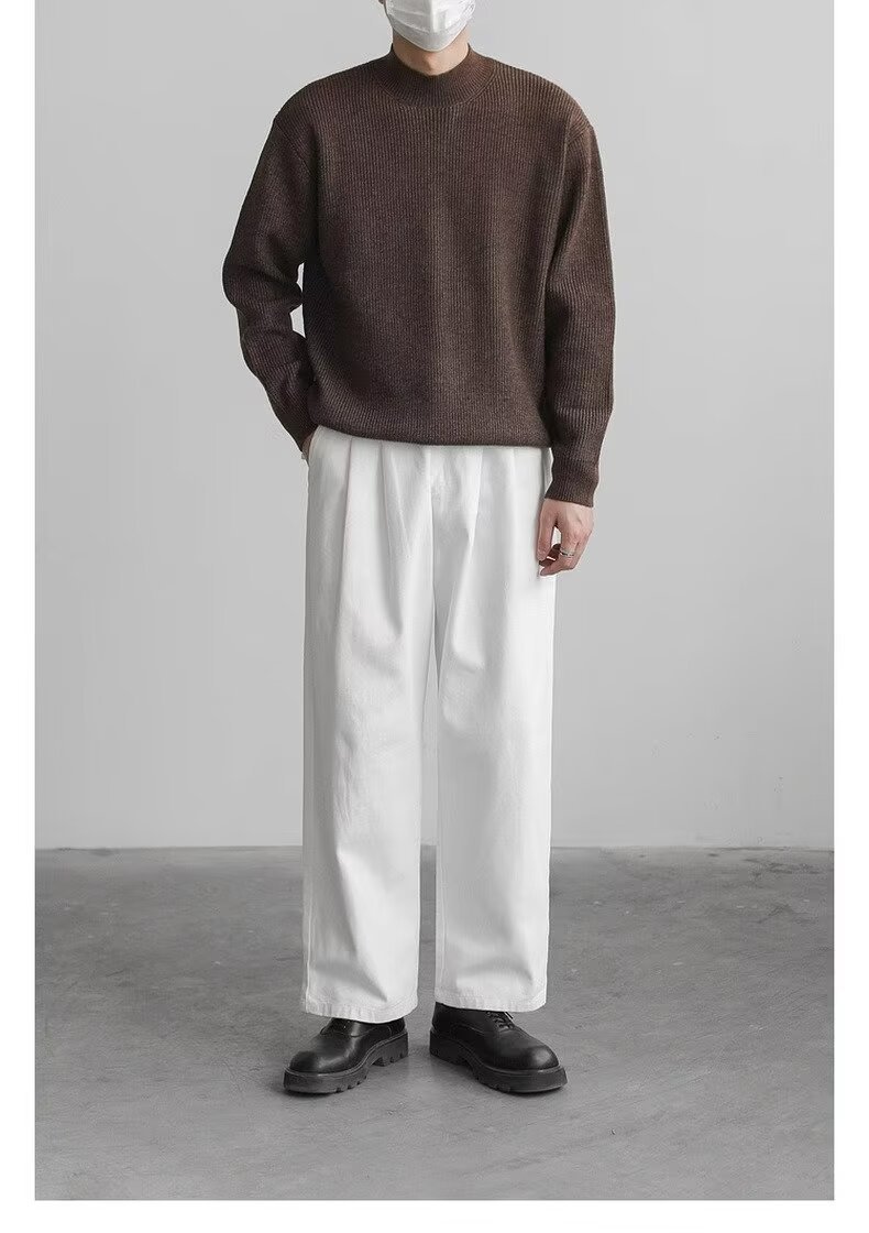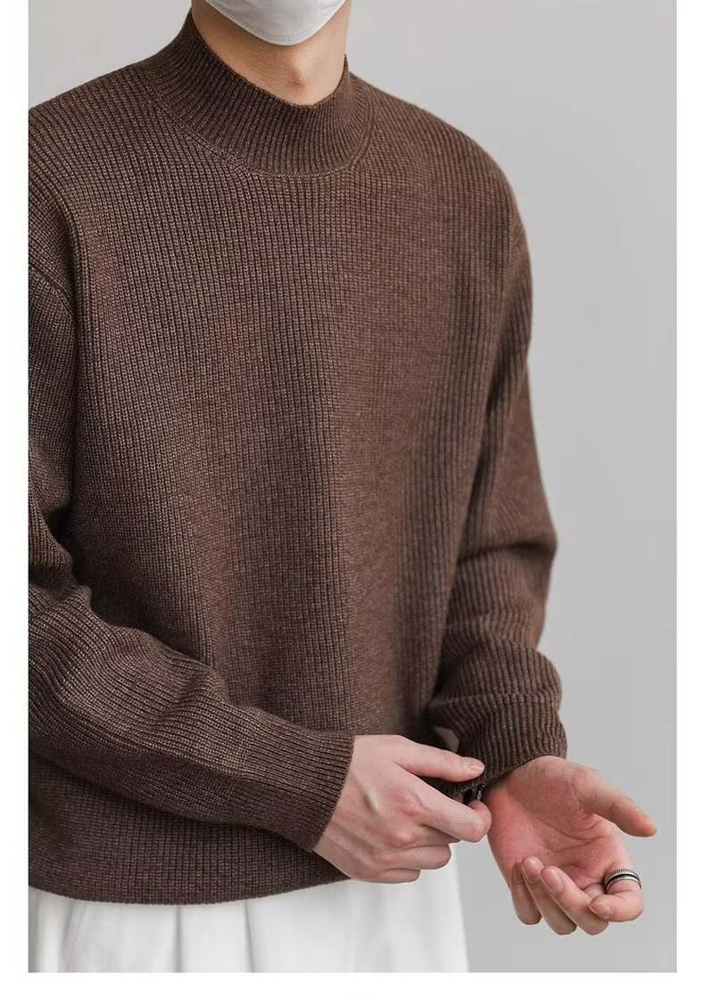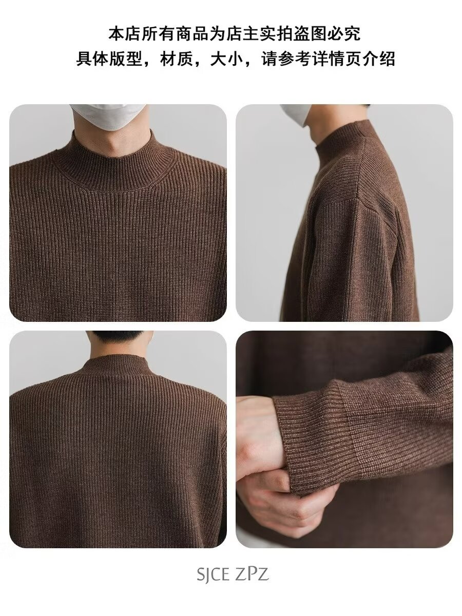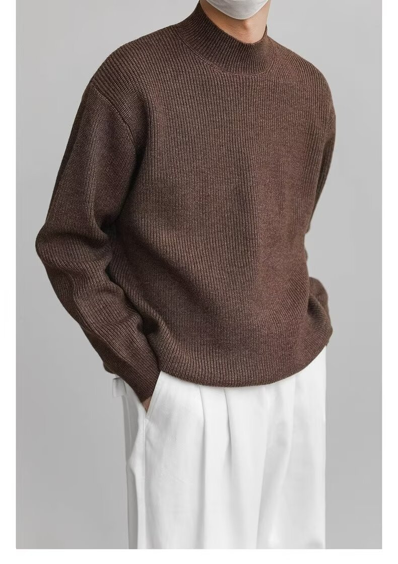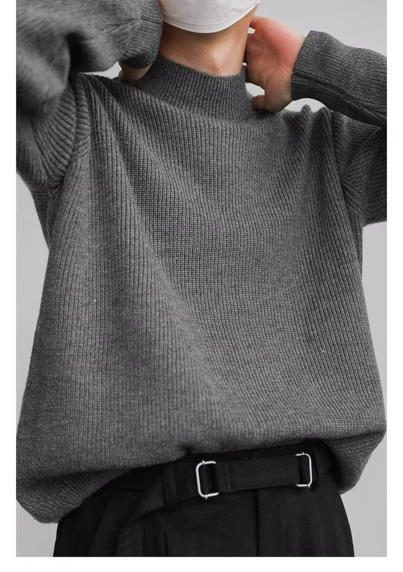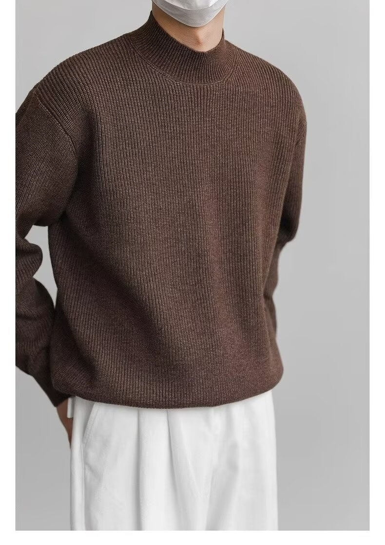 홍콩 스타일 레트로 패션 스웨터 남자 하이 하이 칼라 캐주얼 니트 스웨터 트렌드 한국 솔리드 컬러 틈새 인테리어스토어 가기