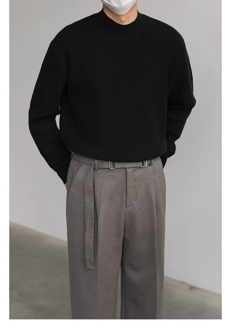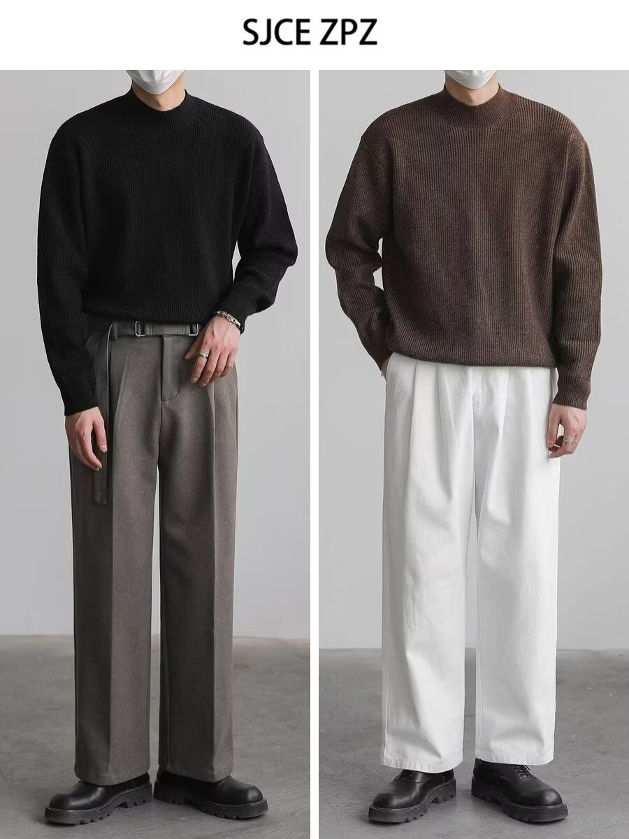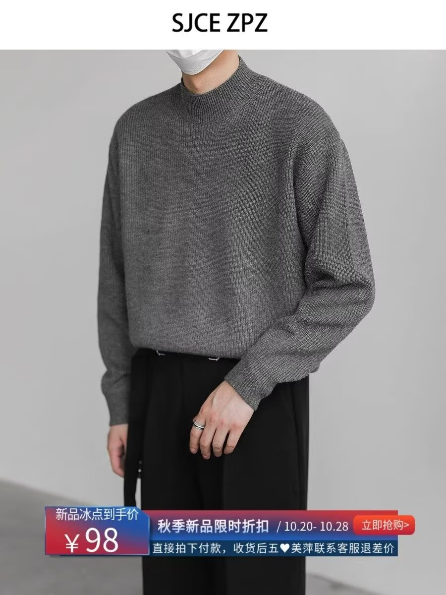 홍콩 스타일 레트로 패션 스웨터 남자 하이 하이 칼라 캐주얼 니트 스웨터 트렌드 한국 솔리드 컬러 틈새 인테리어