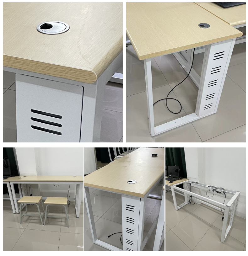 초등 및 중등 학교 학생을위한 도매 학교 컴퓨터 실 더블 컴퓨터 책상 멀티미디어 교실 마이크로 컴퓨터 실 학생 컴퓨터 테이블 및 의자