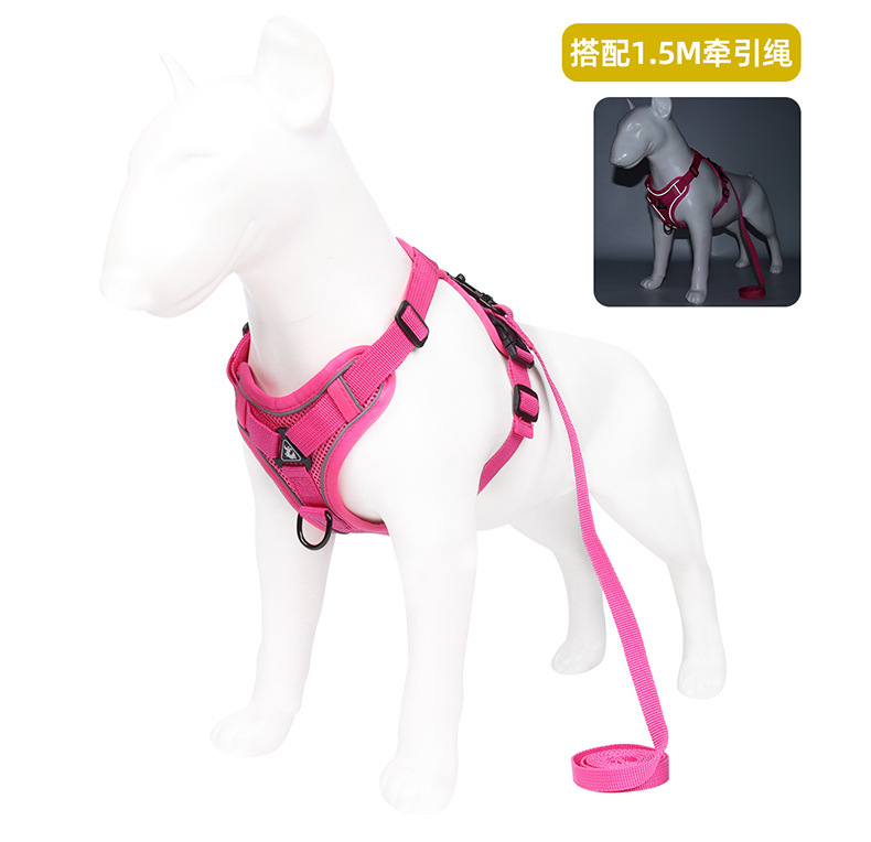 새로운 개 가죽 끈 조끼 스타일 애완 동물 하네스 반사 통기성 고양이 산책 밧줄 개 밧줄 대형 개