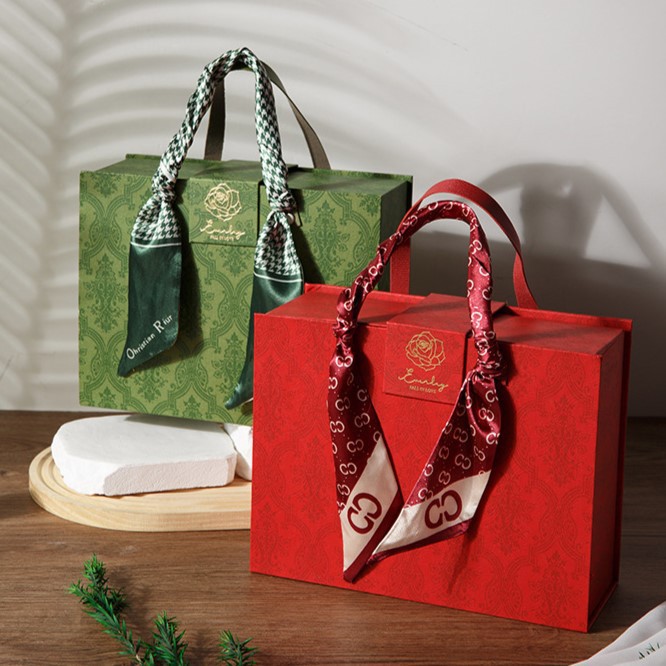 새로운 핸드 헬드 선물 상자 실크 스카프 우아한 헤어 스트랩 올 매치 레트로 헤어 스트랩 백 핸드 헬드 선물 상자 장식 작은 리본스토어 가기