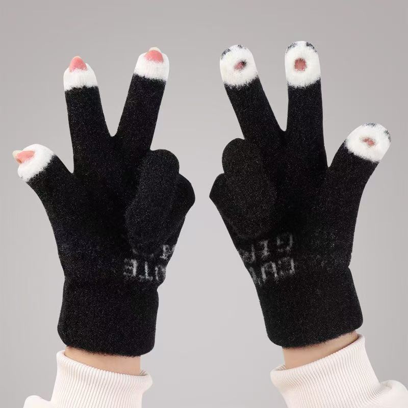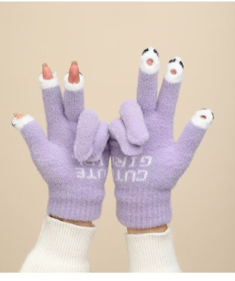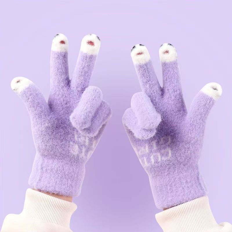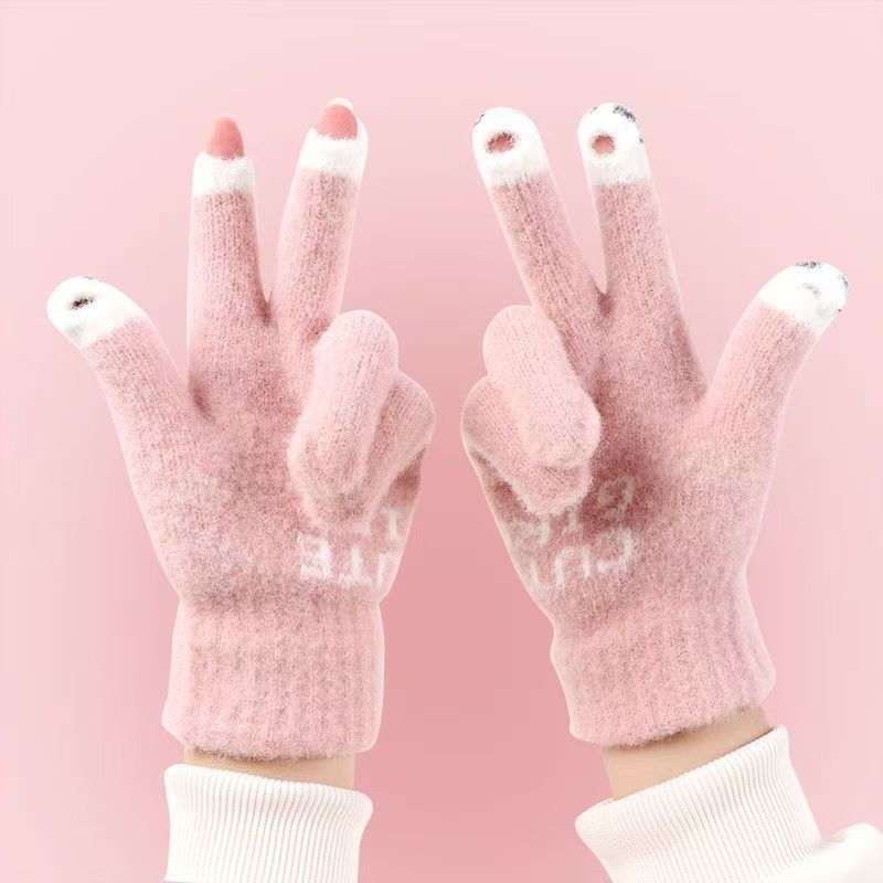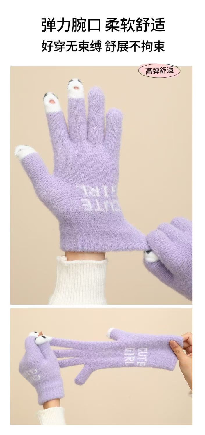 여성용 겨울 새 스타일 귀여운 만화 학생 장갑, 따뜻하고 달콤하며 패셔너블하고 다재다능하며 운전에 적합하며 따뜻한 터치 스크린